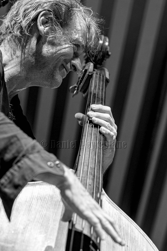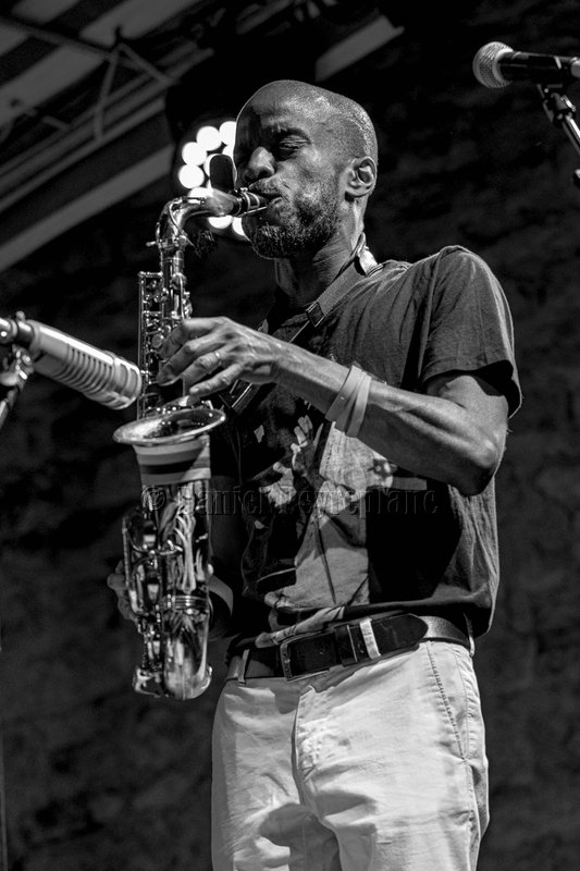 Le trio n’a qu’une devise : pas de convention, pas de limite, tout à l’écoute, à l’interaction et à l’imagination. Autant dire que les Moutin Brothers sont à leur affaire sur ce terrain ; sans même échanger un regard, ils martyrisent le tempo, bifurquent sans crier gare du hard bop le plus volcanique au calypso le plus chaloupé, puis prennent le cap du funk. Jowee Omicil est heureux comme un poisson dans l’eau. Aux traits rageurs taillés à la serpe succèdent les douces mélodies d’une ballade, et quand les deux frangins s’évadent dans leurs ébats musicaux, il arpente la scène à la manière de Miles Davis, lance à point nommé des petites phrases avec l’instrument qu’il a en main, tenant la dragée haute aux triples croches qui défilent sur la contrebasse et sous les baguettes au tempo de 160 à la blanche (si si, c’est possible !). Et quand un incident technique prive le trio de sa grand-mère, nous avons droit à un duo batterie-saxophone soprano époustouflant. Jowee Omicil est également un adepte du hip-hop, dans lequel il entraîne ses compagnons pour un MOM blues qui part très loin du blues.