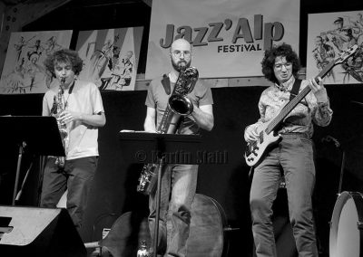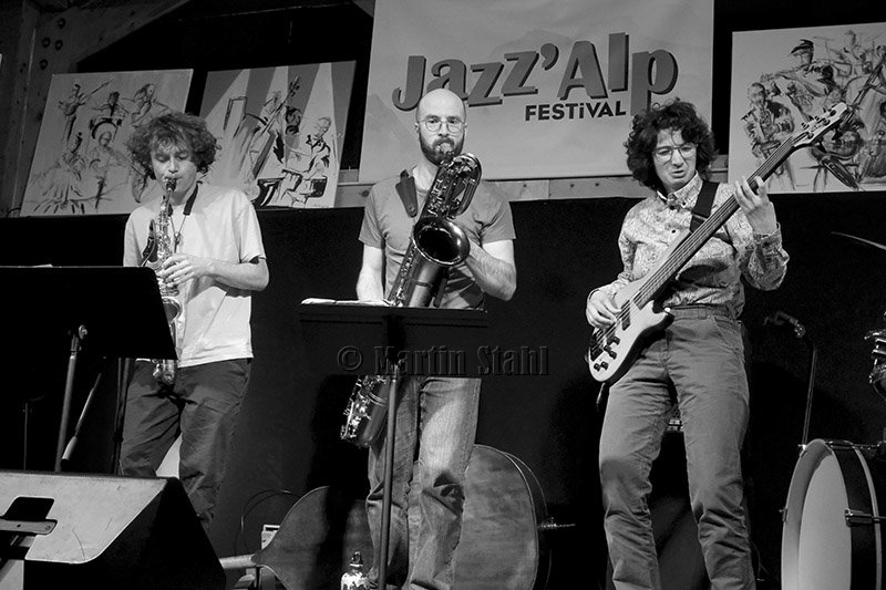 Philémon Pelletier est aux percussions et au vibraphone, cet instrument peu présent dans les groupes de jazz et qui apporte avec son son cristallin un soupçon de délicatesse. Le duo de saxophonistes Axel Autet, alto, et Quentin Lisack, baryton, font la paire souvent en symbiose. Enfin Max Sanfilippo au jeu énergique, à la batterie.