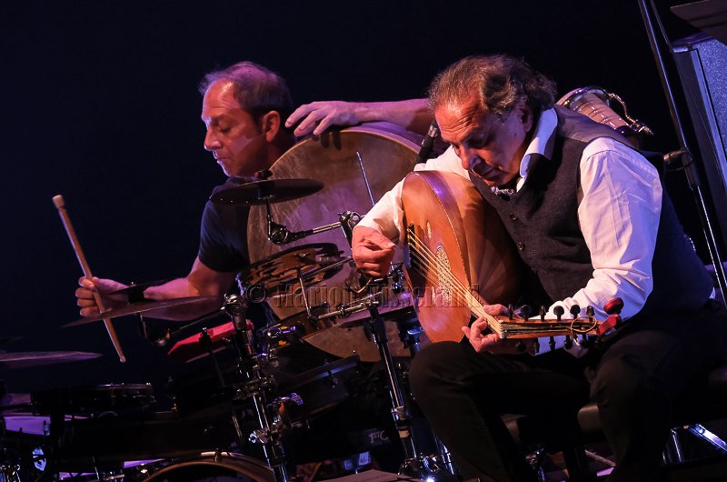 Quelle chaleur et quel humour de la part Rabih Abou-Khalil qui nous happe dès les premières notes sur son oud. Mais détrompez-vous, il ne monopolise pas la scène ; les trois compères s’expriment et se complètent parfaitement. Lorsque Mateusz Smoczyński improvise au violon, Rabih l’accompagne délicatement avec des notes à la main gauche sur le manche de son oud et inversement l’improvisation de l’oud est soutenue par une formule rythmique discrète au violon.