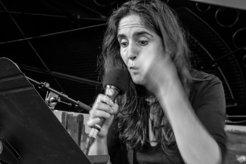 Celui qui pilote l’Impérial Bösendorfer, c’est François Raulin, pianiste économe et incisif, caressant comme une brise, effilé comme un sabre. De l’autre côté, devant la mince paroi de verre qui nous sépare du fleuve, le dos fleuri de Pascal Berne ondule, courbé sur la contrebasse, chant profond de l’archet qui plonge dans les profondeurs du bois comme une rame se frayant un chemin à travers les nymphéas. Entre les deux, la silhouette brune de Laura Tedeja veille sur le feu du creuset. Profonde dans ses silences, virevoltante dans son chant, c’est elle la voix de ce trio de poètes.