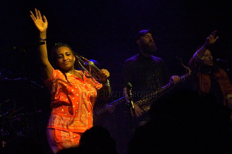 S’ils sont sept au lieu de neuf avec deux cuivres manquants – le sax ténor de Denis Scully et la trompette de Jonny Enser faisant ici largement l’affaire-, c’est plutôt du côté du chant que l’on trouve du changement, puisqu’avec leur troisième album «Find your Flame» qui vient juste de paraître et justifie cette tournée, c’est désormais Jessica Aziza, aka Aziza Jaye qui tient le micro.
