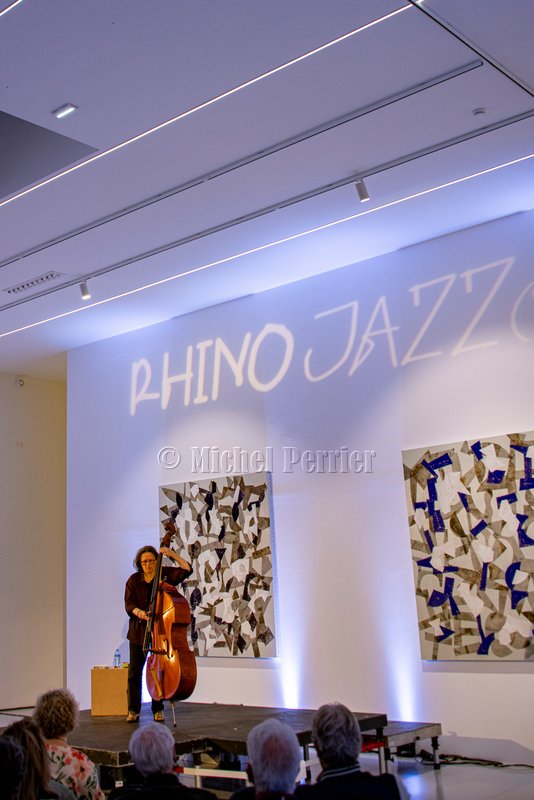 Dès les premiers coups d’archet, l’osmose se crée entre la contrebassiste, la peinture et leur environnement. A sa manière, la galerie apporte sa pierre à l’édifice sonore par un effet de réverbération qui en fait résonner tout le volume. Où que nous nous trouvions dans la galerie, nous sommes enveloppés par le son de la contrebasse, pourtant sans aucune amplification. L’ensemble est d’une immense pureté, d’une grandiose simplicité.