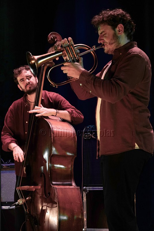 Lou présente Christophe et Cyril, nous remercie pour notre écoute, nous fait voyager alors dans le Morbihan pour Kersine, solo de piano, chant, solo de trompette, le tempo est vif, puis la mélodie redevient plus tendre avec le batteur qui utilise les mailloches.