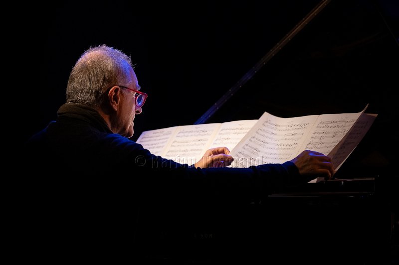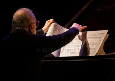 Enrico Pieranunzi pour le rappel propose à nouveau un beau standard et fait éclater de rire la salle en dépliant la partition du morceau sur cinq pages envahissant littéralement le dessus du Steinway… Pour le second rappel, on en revient à Fauré avec un titre intitulé par Enrico Bonjour Dolly ! (chez Fauré : Dolly suite opus n.56. Berceuse), avec un arrangement de rythmique latino-américaine.