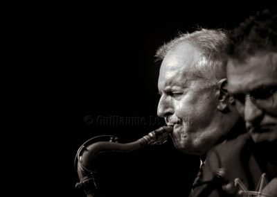 Par cet après-midi pluvieux, ils démarrent, tiré des parapluies de Cherbourg, I will wait for you de Michel Legrand. Les deux compères entament un dialogue alternatif, égrainant les notes du thème avec un raffinement précieux. Après un France Dimanche titre obscur de Charles Trenet, retour au premier compositeur avec What are you doing the rest of your life. On sentit un auditoire, attentif, pensif et attendri par ces sonorités dignes de Dexter Gordon dans le film « Round Midnight ». Une certaine nostalgie se dégagea de cette plage qui mit enfin en communion le public et les artistes. Puis Michael Chéret sans son chapeau, fit diversion avec l’une de ses créations rendant hommage à son illustre invité qu’il connait depuis quinze ans, avec Song for Scott. Délicatesse de la pensée à l’unisson de la délicatesse des notes dévoilées avec une maitrise affirmée, une tendresse intacte. Les sidemen jusque-là cliniquement discrets, se mirent au diapason, à l’unisson des deux ténors. What now my love ou et Maintenant de Bécaud permit le retour du swing si cher à Scott. Michael affirme sa présence, son autorité dans cette plage, tandis que Scott vibre de jeunesse dans ses phrasés, compensant ses hésitations physiques, ils alternent et entrainent les sidemen dans leur joie placide sur un rythme enjoué rappelant les 100 000 volts du créateur du morceau. Place à la ballade standard qu’est It never was you avec des souvenirs à la Ben Webster, Scott put y faire état des ses envolées nostalgiques, ponctuées par le jeu affirmé de la batterie, chacun de prendre sa place et mettre en valeur leur jeu solide.