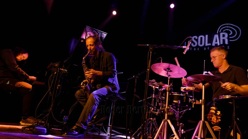 Citons-en quelques-un : Ludo, Ailleurs, Y’a Shiva, Kikou ou Fall. Pendant une heure, les morceaux se sont donc succédé avec leur son particulier, révélateur d’un style propre au trio. La plupart du temps, le piano peignait un paysage mélodique harmonieux, très groovy et chaloupé. Venaient s’y ajouter des touches de couleurs tribales sous la baguette du batteur ou des clairs-obscurs un peu free sous les touches du sax.