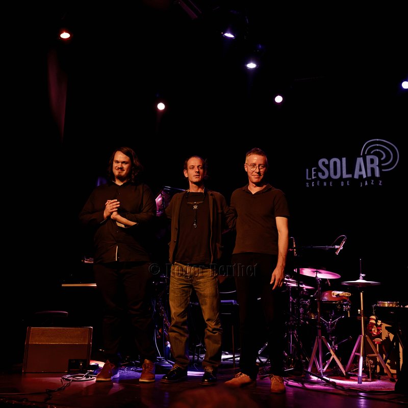 Qu’est-ce qui les a rassemblés ? « C’est l’envie de faire de la belle musique. Les compos viennent surtout de Franck puis Arthur les réarrange et Aymeric y ajoute sa touche. Mais ce qui nous rassemble surtout, c’est qu’on est tous les trois à la marge du jazz. Arthur est plutôt pop, Aymeric plutôt du côté des musiques improvisées et contemporaines, Franck est très sensible aux percus afro-cubaines et afro-brésiliennes. On peut dire qu’on est à la convergence des marges ! » Cette définition imagée correspond aux neuf titres égrenés au Solar, nourris de beaucoup d’impros.