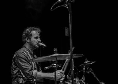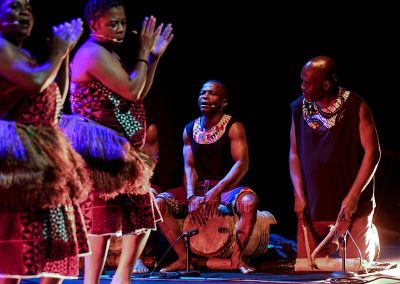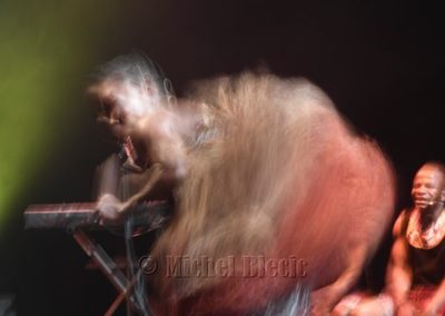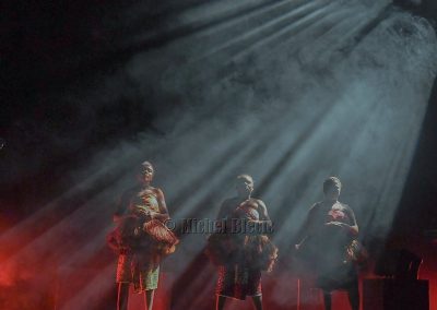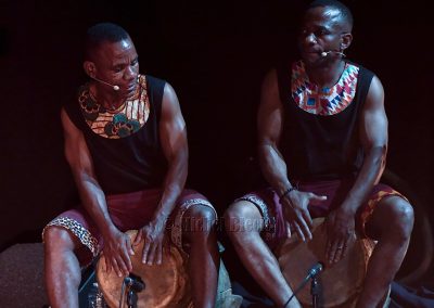 La pression monte lorsque les percussions entrent puissamment dans la fête. Gaston Motambo, Michel Kossi et Sorel Eta donnent le souffle au concert que nous attendions.