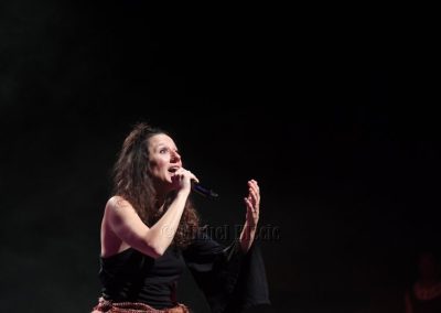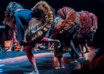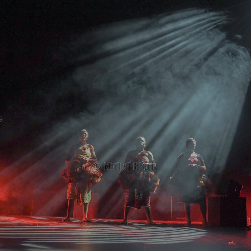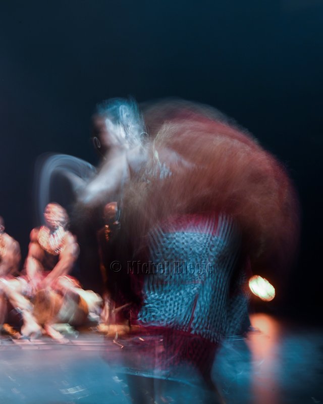 Les chants et voix sont superbes et la chorégraphie se développe dans un dispositif scénique dialoguant avec le public par les traversées frontales et répétitives de la scène par les danseuses.