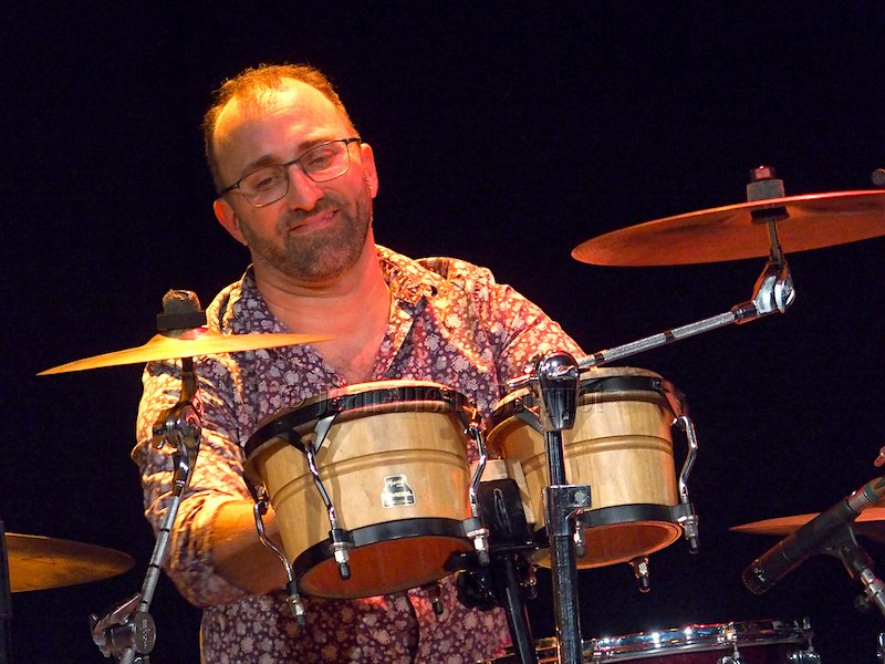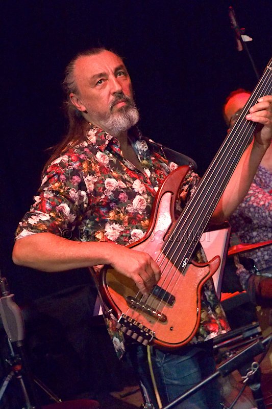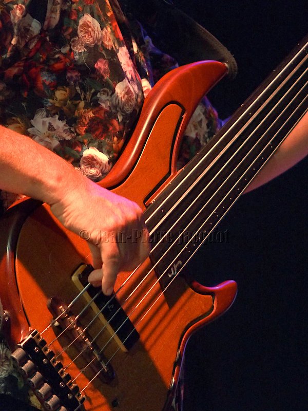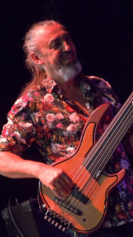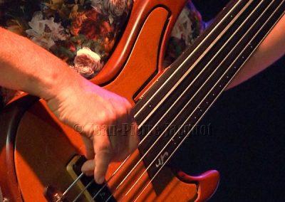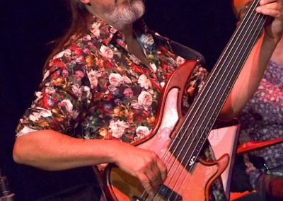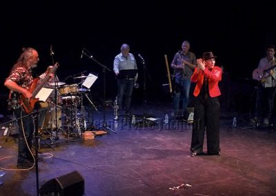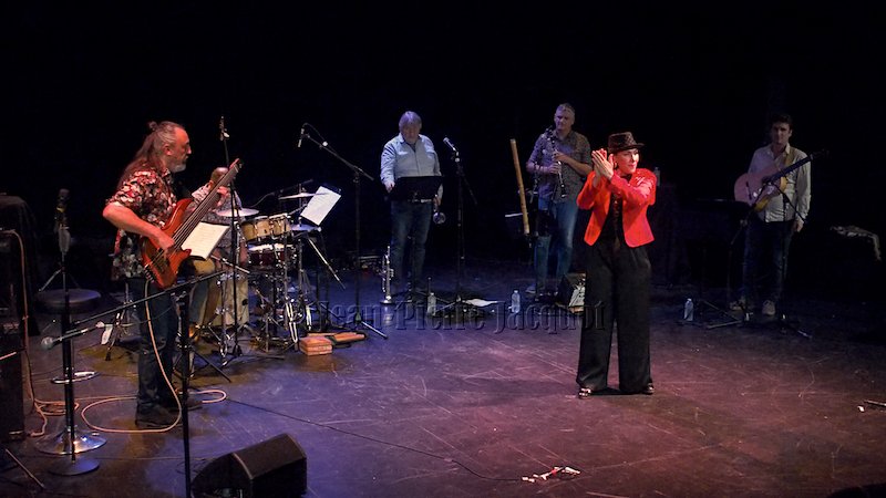 Et voici ensuite le projet de Manu Vallognes, bassiste très connu de la scène régionale qui nous présente ce soir « Don Salluste », projet intitulé « Jaco à Séville ». Le bassiste au groove reconnaissable, à la basse fretless six cordes est accompagné de Jean-Luc Peilhon, multi-instrumentiste (harmonica, clarinettes, shakuhachi…), Vincent Desmazière, guitare et palmas, Fabien Rodriguez, batterie, percussions, cajon et Pierre Drevet, trompettiste bien connu du public. Quant à la danseuse flamenca aux palmas agiles, ce sera Maria Gasca, professeure de flamenco très investie sur la scène régionale.