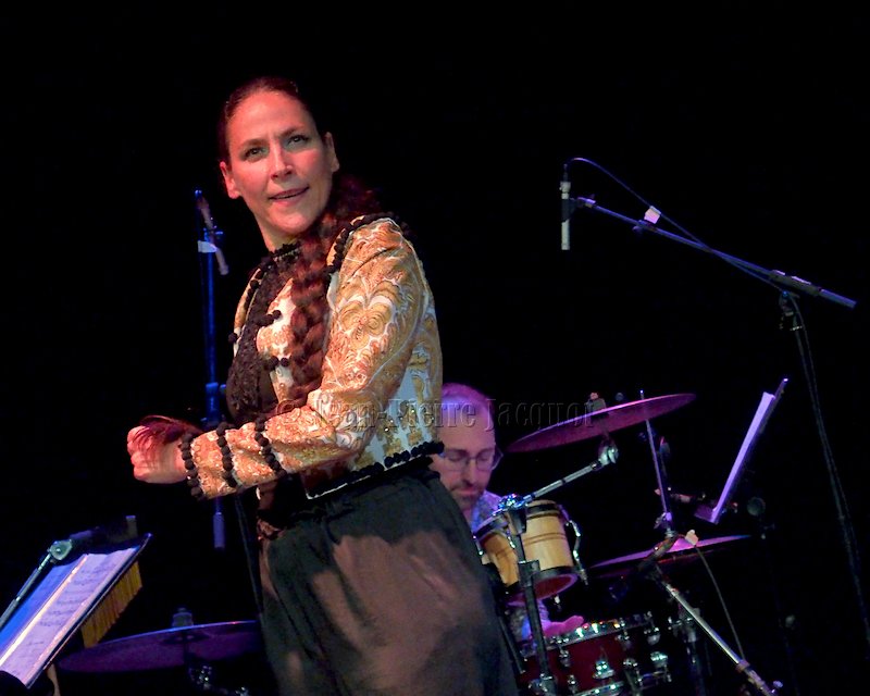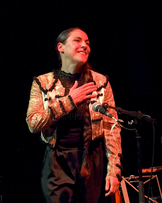 Maria Gasca nous enchantera par son art et ses différentes tenues tout au long de ce long plaidoyer autour des œuvres de Jaco Pastorius, génie tourmenté disparu en 1987. Longue tresse noire, boucles d’oreilles volumineuses noires et dorées, Maria commence le concert avec un éventail rouge, puis son art sera accompagné sur son ensemble ample, pantalon noir, de veste rouge et chapeau…