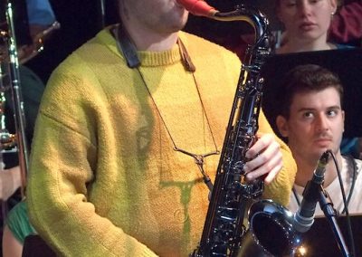 Yearnin’ d’Oliver Nelson sera une parfaite introduction, suivi de Cool Yule de Steve Allen où nous pourrons apprécier Maelys au chant. The Heart of a Matter de Bob Mintzer, long, entraînant fera même danser les saxophonistes sur leurs chaises ! L’intro au piano de A Child is born de Hank Jones nous plongera dans la lumière des portables des trompettes, reprise par le public et dans cet environnement, cette ballade à trois temps lente, mélodieuse puis plus forte nous fera apprécier une mise en place impeccable.