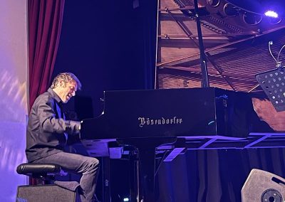 Comme le pratique Stefano Bollani (*), Paul Lay est sans doute l’un des rares pianistes à avoir à ce point fait fusionner sous ses dix doigts, les musiques dites classiques et les flammes des musiques que le jazz aura développé depuis le début du XXème siècle. En « grand pianiste », il aura, visiblement avec plaisir, joué les 97 touches du Bösendorfer Impérial mis à sa disposition ce soir.