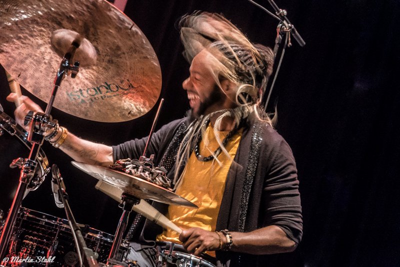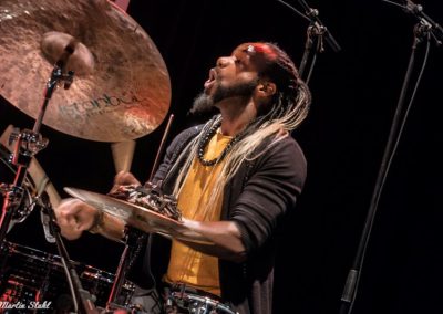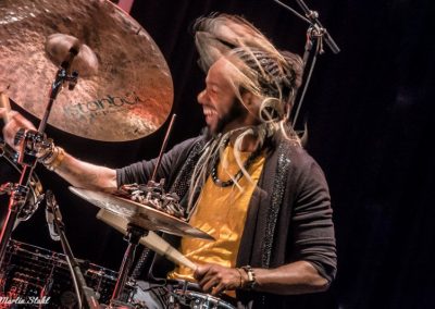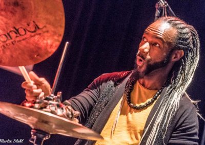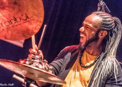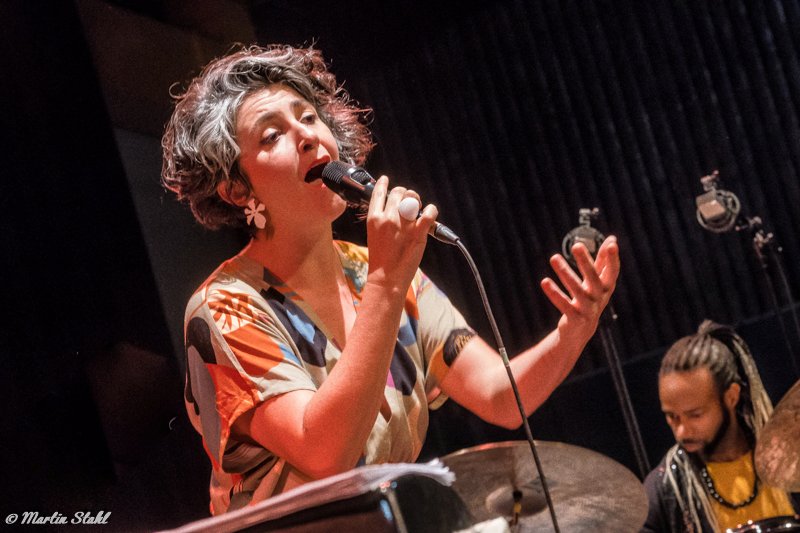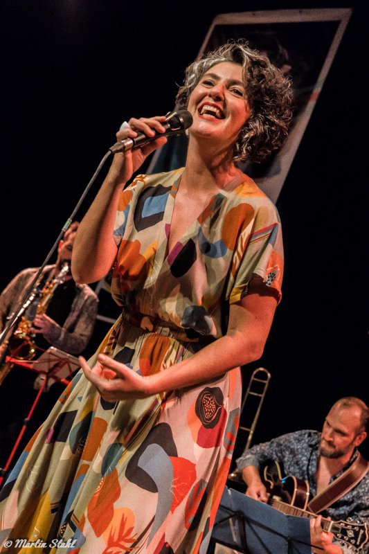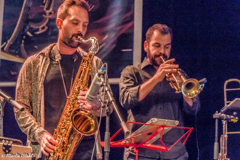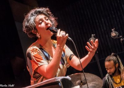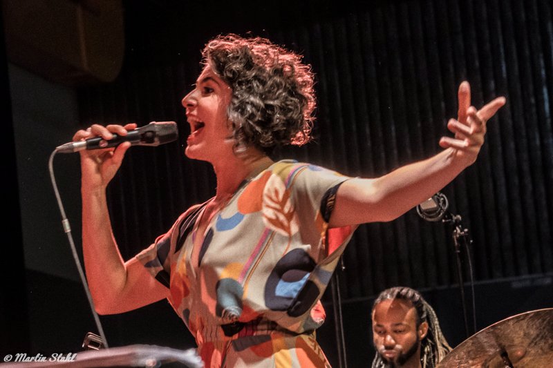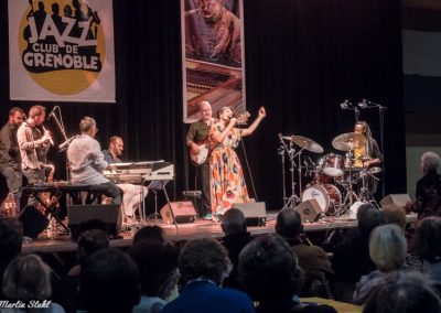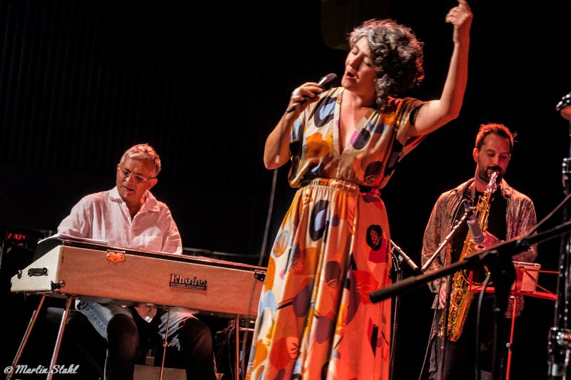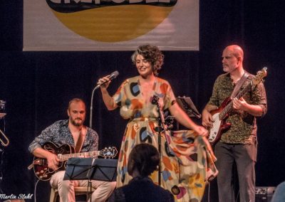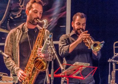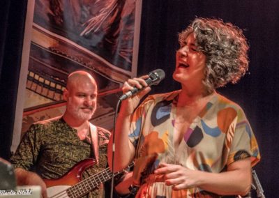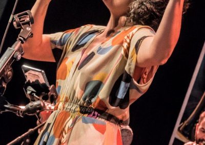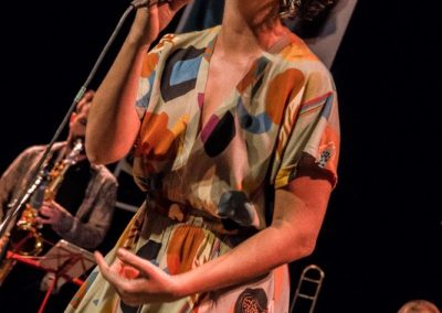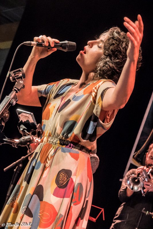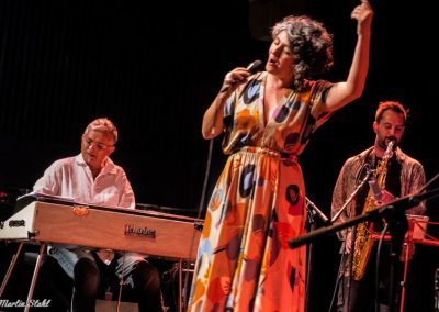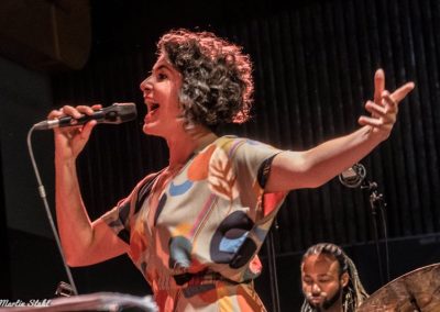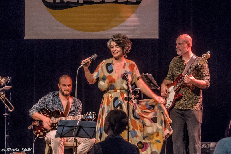 De l’ énergie il y en a à revendre, à commencer par la chanteuse et meneuse Paula Mirhan, déjà applaudie lors du précédent concert du Trio Amparo. Paula est en forme, elle chante, danse sur les rythmes de samba. Elle est accompagnée par Rui Barossi à la basse, Marcel Bottaro à la guitare, Rubinho Antunes à la trompette et au trombone et Hugo Affetouche au saxophone et à la flûte, le tout sous la houlette de Zaza.