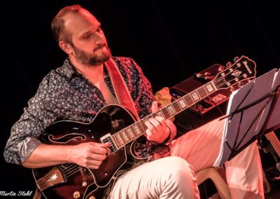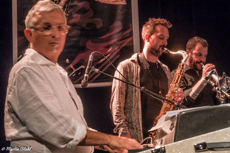 Le sextet de Zaza est en réalité un septet car est reçu un invité surprise, qui n’est pas vraiment une surprise pour nous, puisqu’il s’agit du pianiste Alfio Origlio, compagnon de route de Zaza depuis longtemps.