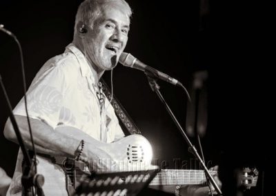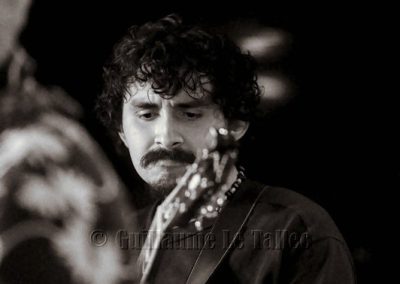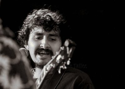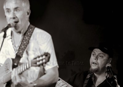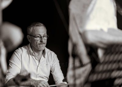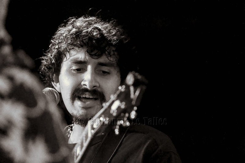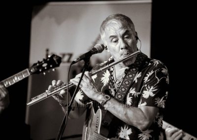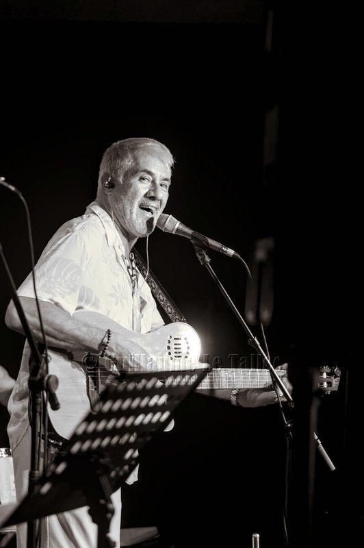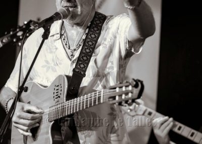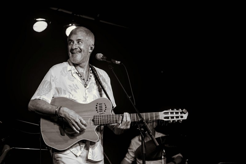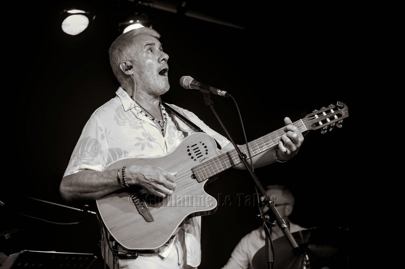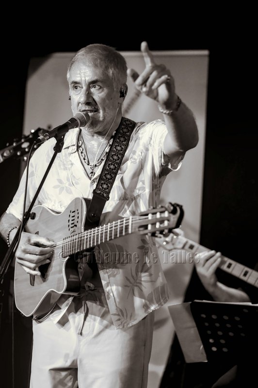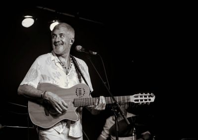 Il prend le temps de partager, de raconter les histoires de ses textes et avec le jeu des quatre musiciens, nous cheminons au Brésil. C’est une balade du Nordeste, la petite Afrique du Brésil ; nous flânons sur un marché ; nous écoutons les camelots proposant des gâteaux brésiliens avec des noms incroyables, mais si beaux à entendre. Le guitariste sort des sons si inattendus, mais tellement dans cette ambiance. Il y a Agua viva, l’histoire du troubadour d’Amérique du Sud à la recherche d’un mythe, du bonheur ici et atteignable un jour. Et toujours la musique, comme ce chant du Sud du Brésil écrit il y a fort longtemps, à la fin de la dictature militaire et une arrivée en France libre, comme un étonnement ; La Samba Novo est jouée et le jeu de la flûte sera un sentiment de plus, une couleur à notre peau et pour cette nuit, un rythme étrangement apaisant.