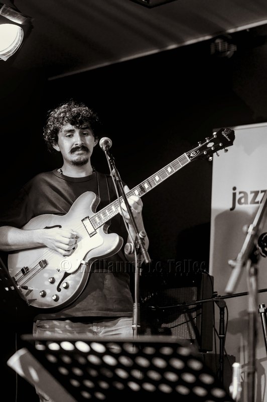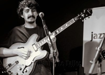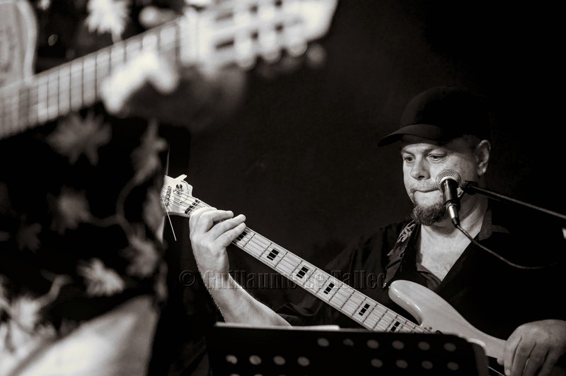 Le deuxième set est encore plus intimiste. C’est la chaleur sur le jazz club. Les oubliés du carnaval de Rio ne sont sans doute pas les perdants de l’histoire du Brésil. A la guitare électrique, Joel Rocha Almeida sort un son bandonéon tout en gardant la subtilité des cordes. C’est inspirant. Le bassiste Greg Théveniau joue depuis longtemps avec Marcos de Oliveira, il chante aussi parfois.