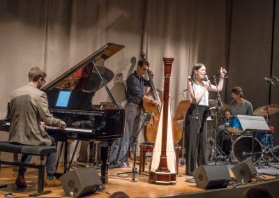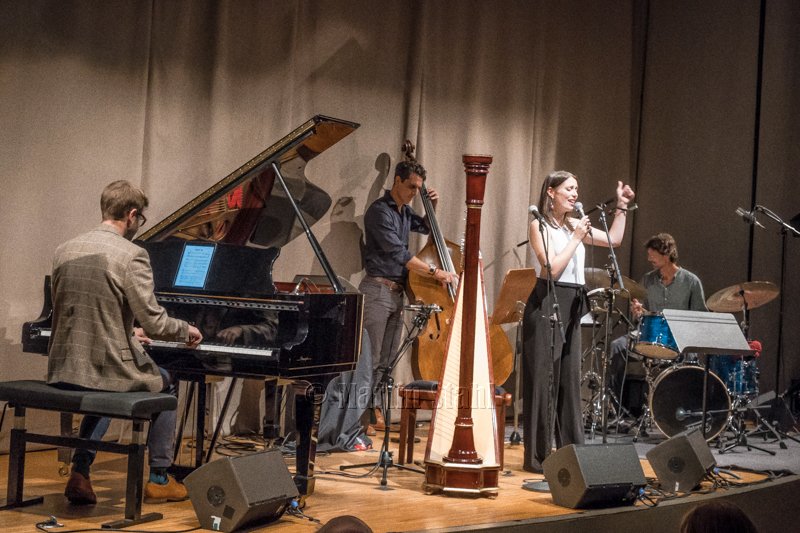 La leader du quartet est Noemi Nuti, d’origine italienne et née à New York, chanteuse, harpiste et compositrice, résidant à Londres. Elle est apparue ce soir dans la rondeur de sa future maternité, souriante et extrêmement sympathique.