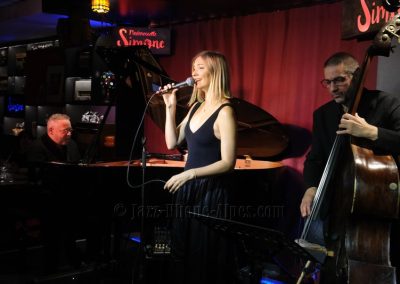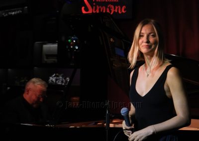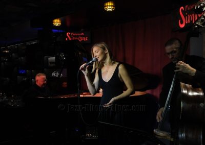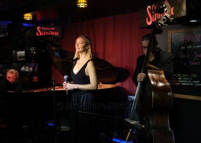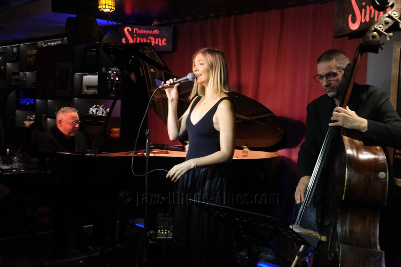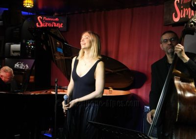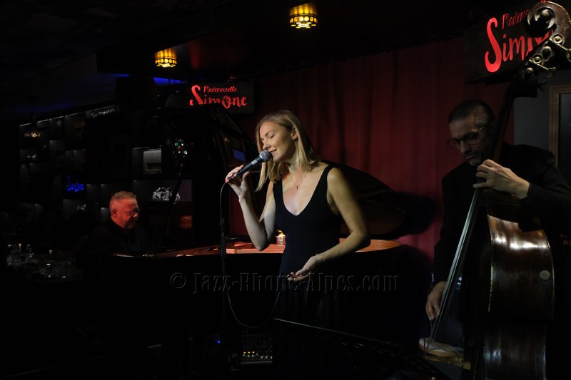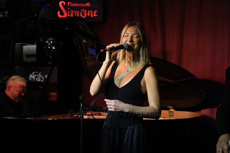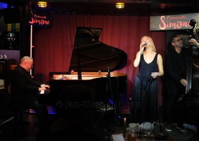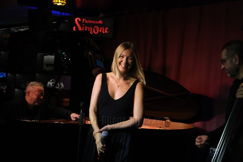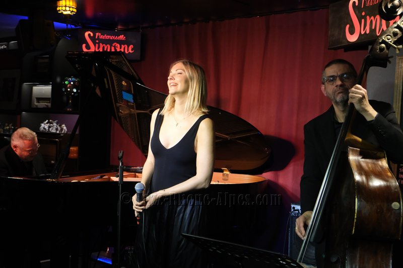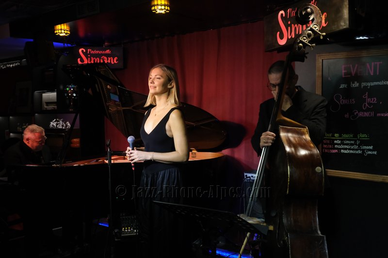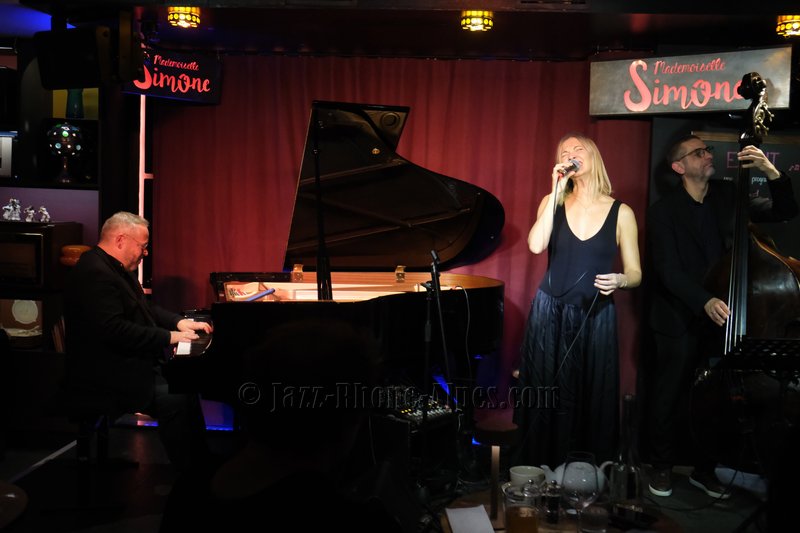 Le pianiste Olivier Truchot, grâce à son épais carnet d’adresses a décidé la chanteuse parisienne Julie Erikssen à venir faire un concert chez Mademoiselle Simone. Le fidèle Patrick Maradan est à la contrebasse. Le public a été averti que le son serait bas et se montre d’emblée attentif.