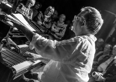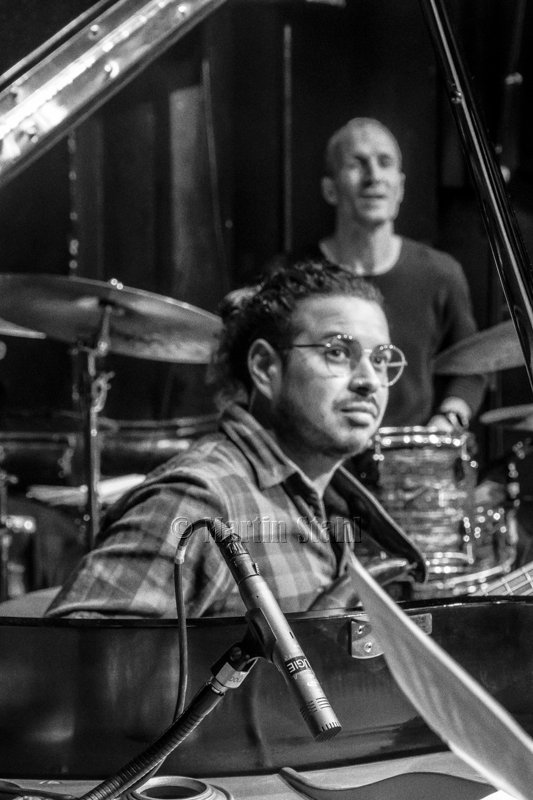 Joanna’s thème c’est du Herbie comme nous l’adorons. Cham Song permet un chorus de piano entre rapsodie et propositions de rythmes chaloupés. Puis le célèbre Poinciana avec son introduction de batterie ; Oligram une belle composition de Rémi. Dual une composition vertige, prestige de Pablo ; et en rappel le très swinguant, fringant « mordant » Be bob, (composition d’Alfio).