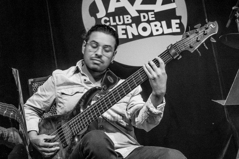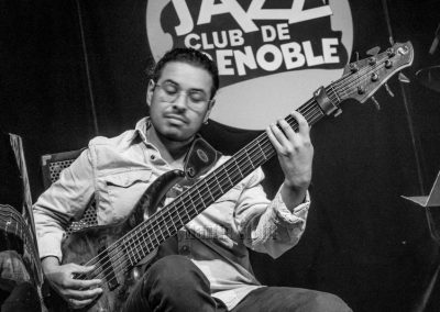 Nous avons pu apprécier cette formation au Jazz Club de Grenoble, qui à défaut d’avoir pu beaucoup répéter, nous a émerveillé du talent de ses membres. En jouant quelques thèmes des plus grands : Herbie Hancock, Ahmad Jamal (ah ! Ce splendide Poinciana) les Beatles aussi, puisque c’est avec les doux et amer Norvégian wood (Harisson pour la première fois dans la musique des fabulous four introduit le sitar) que débute le concert. Et tout de suite, nous sommes dans le climat, chaud et poétique du groupe et qui reflète bien la personnalité de ses membres. Plaza réal (celle non de Barcelonne mais de Juan les pins, puisque Wayne Shorter lui a rendu hommage dans cette bossa nova. Calm est ce beau thème de Pablo, par lequel sa personnalité s’exprime magnifiquement. Il est cependant un bassiste de jazz rock et cela s’entend dans Dia gris, la composition suivante ? Les chorus éblouissant de Pablo conquièrent le public ? Alfio fait des propositions rythmiques étonnantes, pleinement harmonisées, et Rémi propose un chorus éblouissant : le public a besoin de souffler. Ça tombe bien : «le bar est ouvert» !