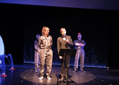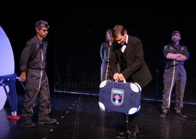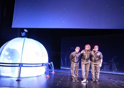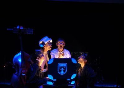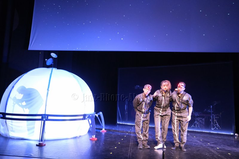 La scène se transforme en cockpit spatial, divisé en zones de narration, où l’ISS (Institut Spatial du Son) collabore avec la NASA (Navigateurs de l’Absurde et Scrutateurs Acoustiques). Le ton est donné : c’est foutraque, c’est drôle, et ça part dans tous les sens. Comme ce fameux 22 août 2015, où Captain Cindy, en quête de raccourcis interstellaires, se fourvoie dans une pluie d’astéroïdes et découvre un troublant trou noir. Oups.