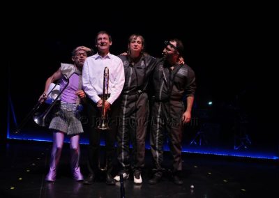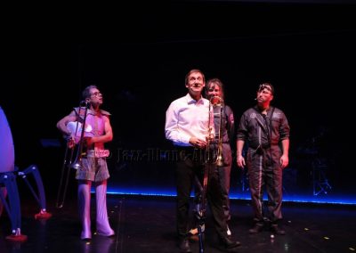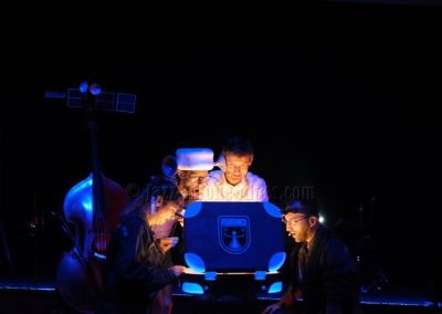 Entre deux péripéties, les musiciens se transforment en véritables hommes-orchestres. Contrebasse, flûte à bec, et même un teremine (cet instrument étrange qui joue avec l’air) font leur apparition, suscitant rires et étonnement. Mention spéciale à la flûte de Pete Baldaï, toujours aussi cocasse.
