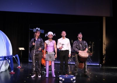 Après le spectacle, les artistes prennent le temps de présenter leurs instruments et de répondre aux questions des enfants, ravis et inspirés. Une mission réussie, même sans GPS intergalactique.