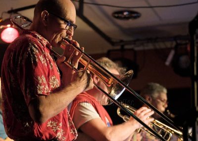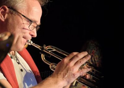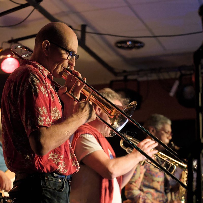 En contact- In Touch, nous le sommes immédiatement avec l’intro trombone-batterie sur «Midnight» ! Le public apprécie.