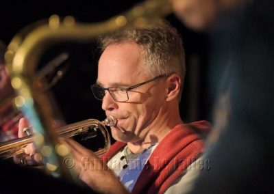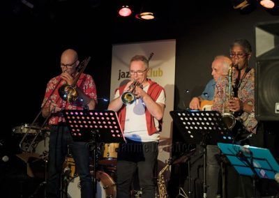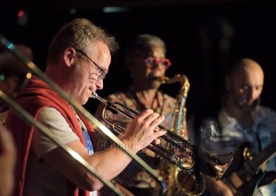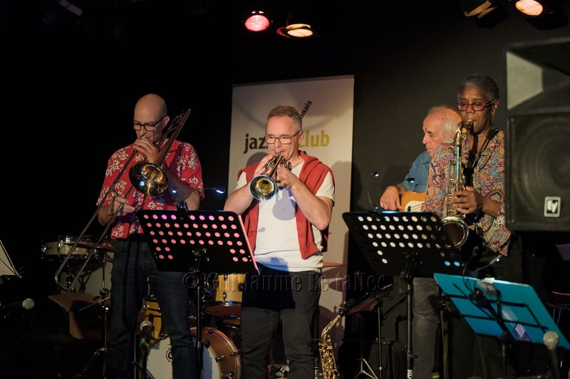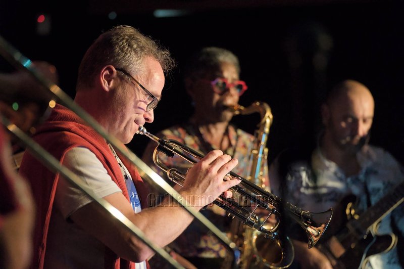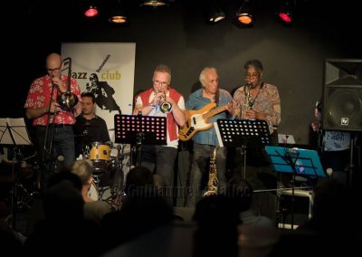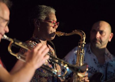 Les trois soufflants, Carol au saxophone, Bertrand à la trompette et Laurent au trombone sont généreux ; ils nous gratifient d’improvisations en solo soutenu par Julien à la batterie et par le bassiste D. Perez pour un cocktail tout à fait au goût du public. Une douce ballade met en valeur le jeu de Anne Fouet au clavier et celui du guitariste Serge Hougassian.