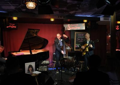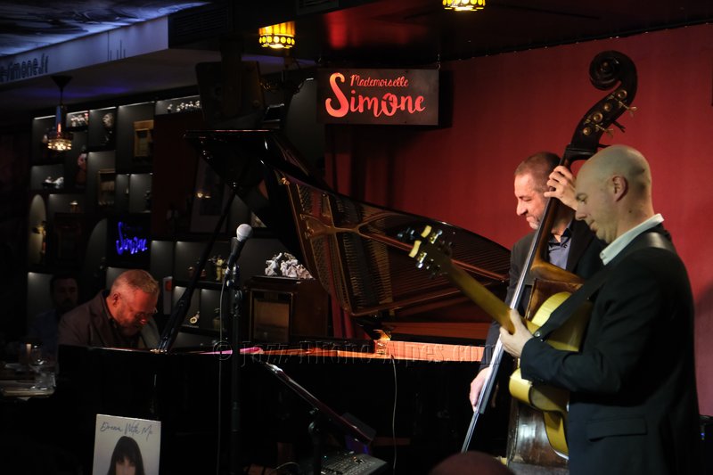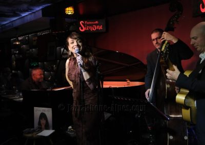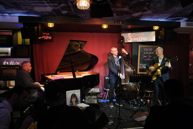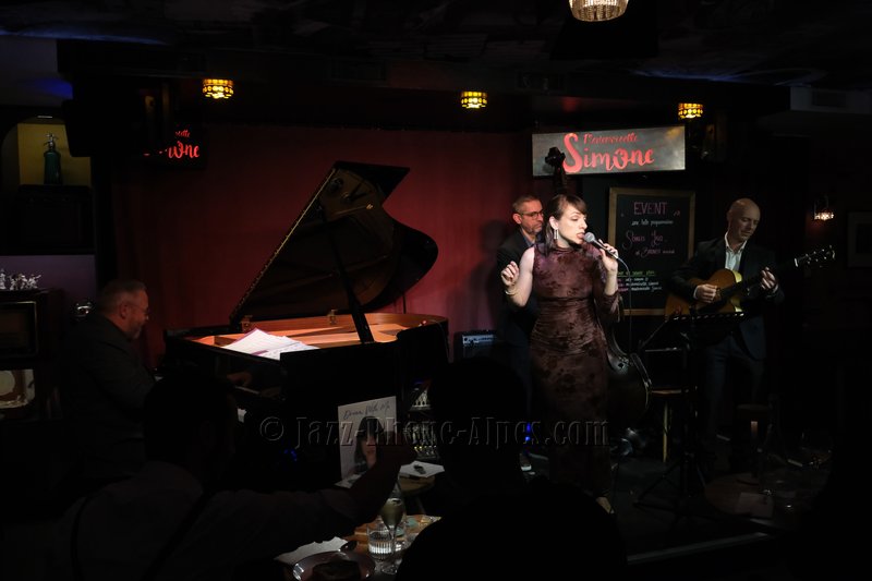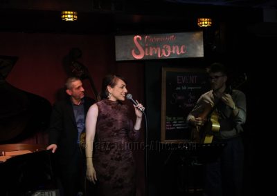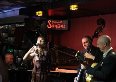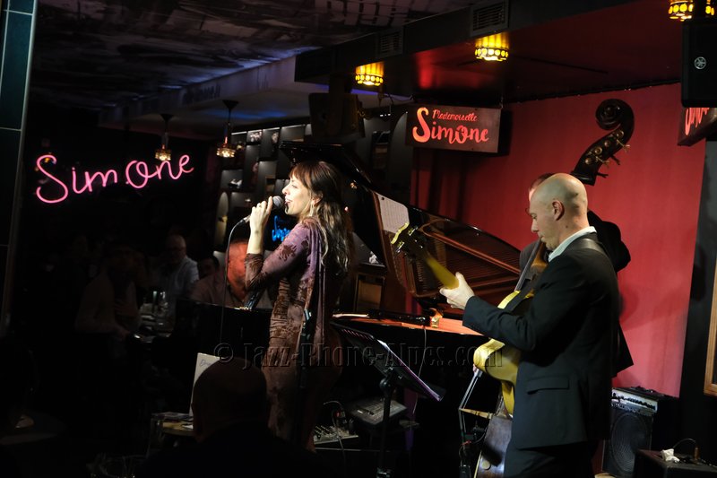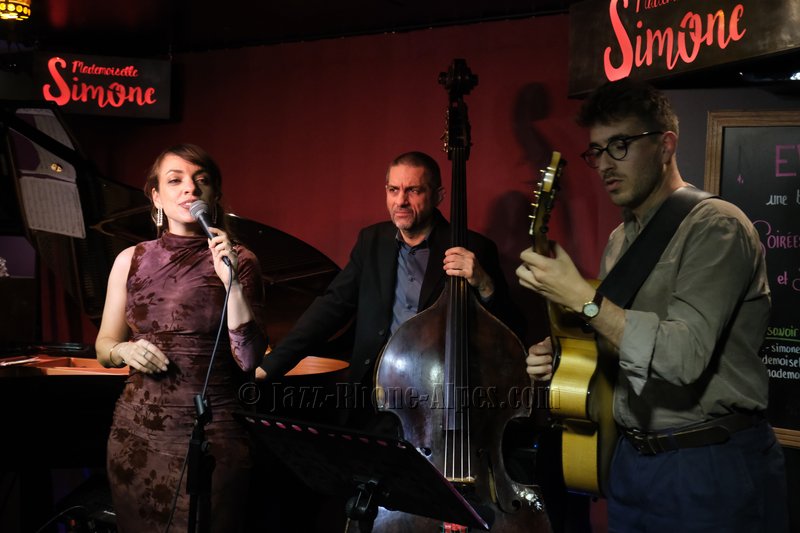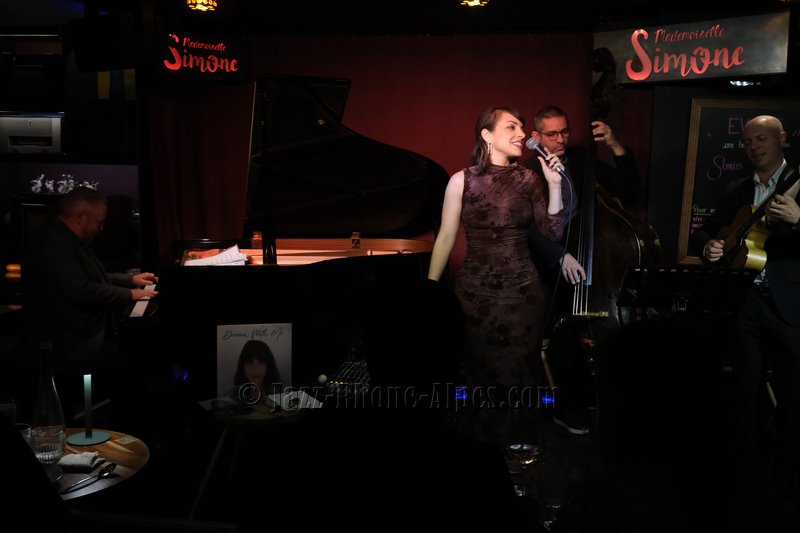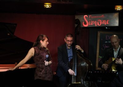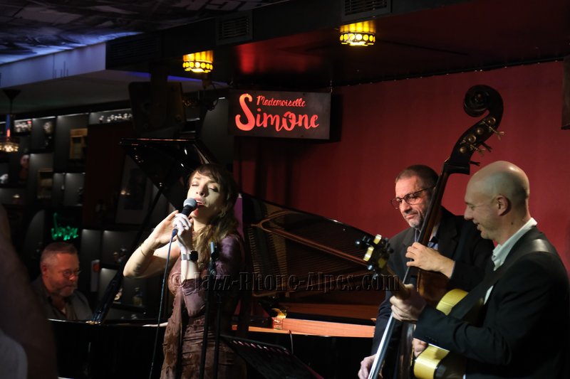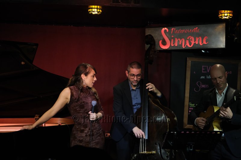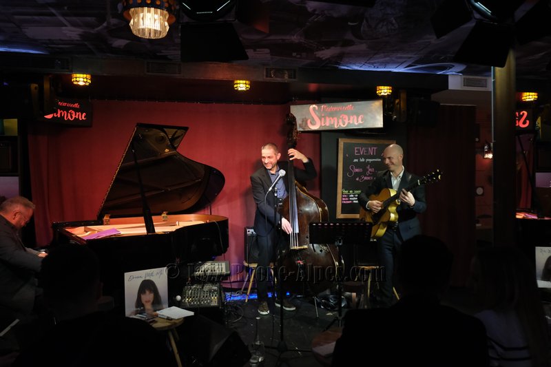 Ce soir, elle est donc accompagnée par la bande d’amis de trente ans, Patrick Maradan à la contrebasse ; Thibaut François à la guitare et bien-sûr Olivier Truchot au piano.
