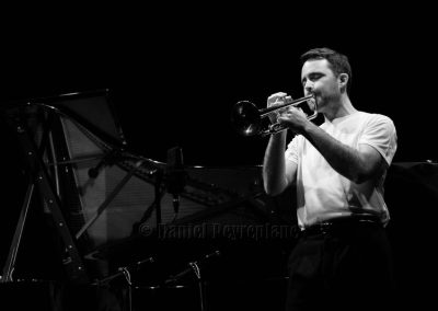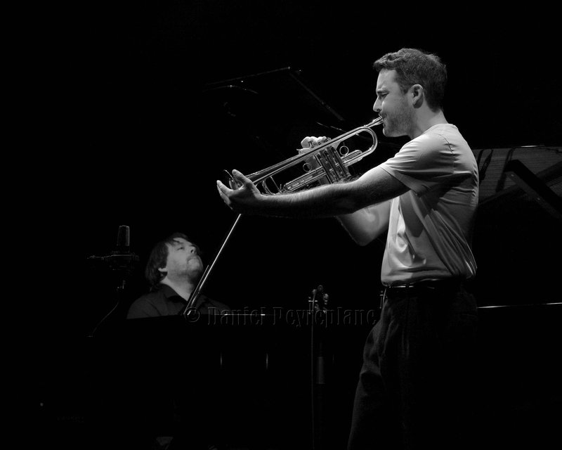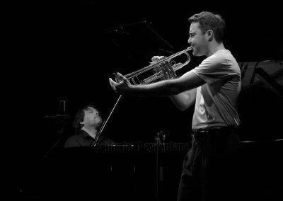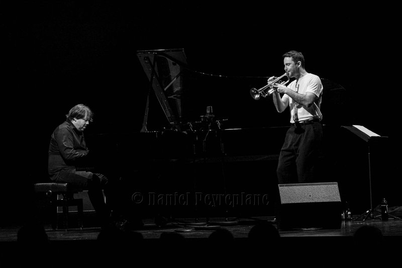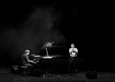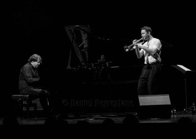 Entre alors en scène David Enhco et sa trompette et Marc Perrenoud qui s’installe devant le piano à queue, tous deux vêtus de noir, qui viennent nous présenter leur projet « Chet ». Un solo de Marc Perrenoud nous met dans l’ambiance de ce moment où grâce, virtuosité le disputent à la fêlure de certains morceaux. I fall in love too easely sera suivi d’un arrangement de My funny Valentine.