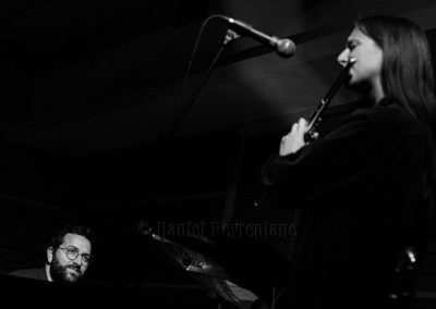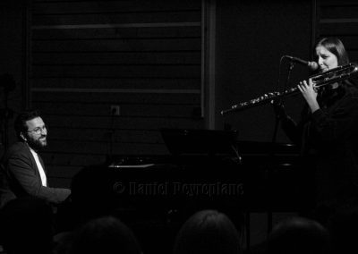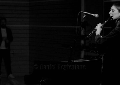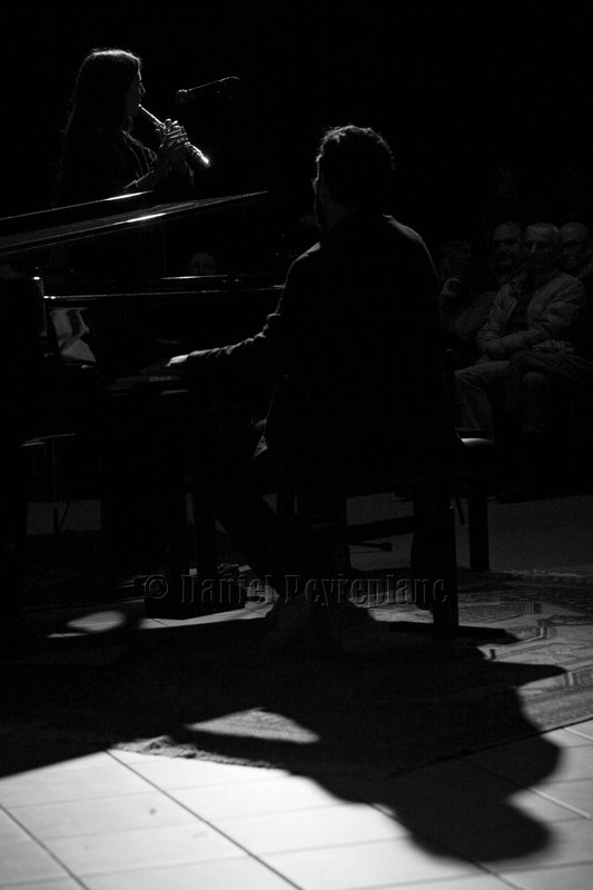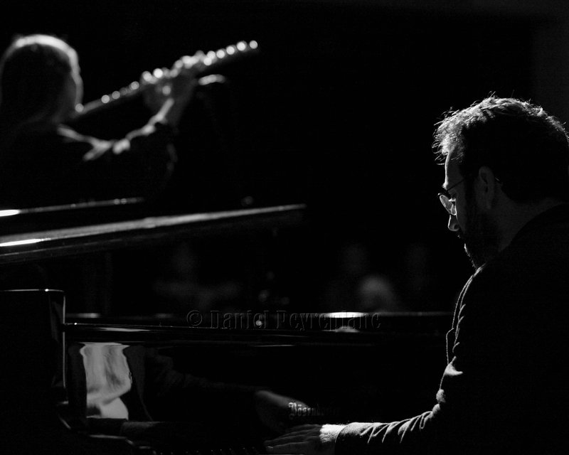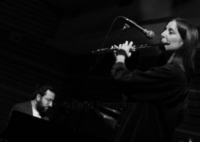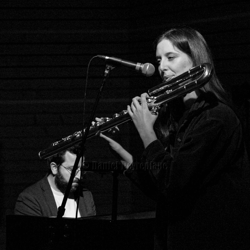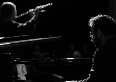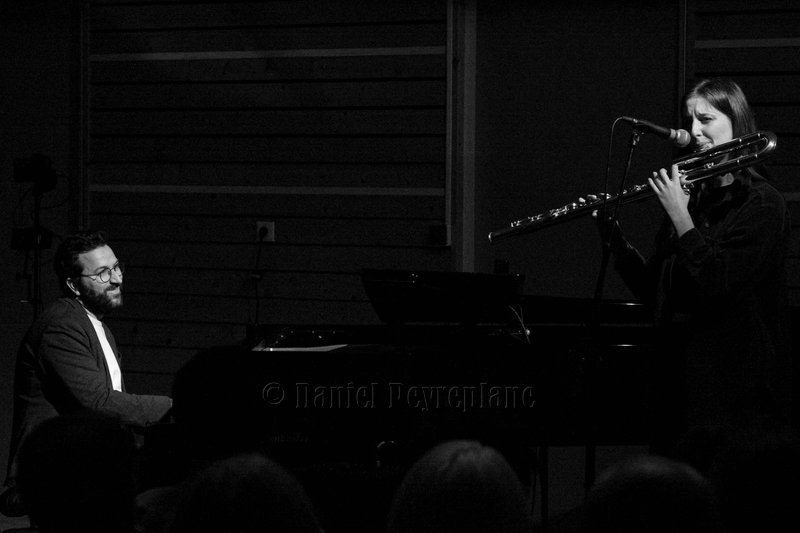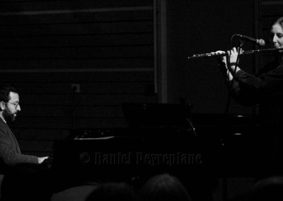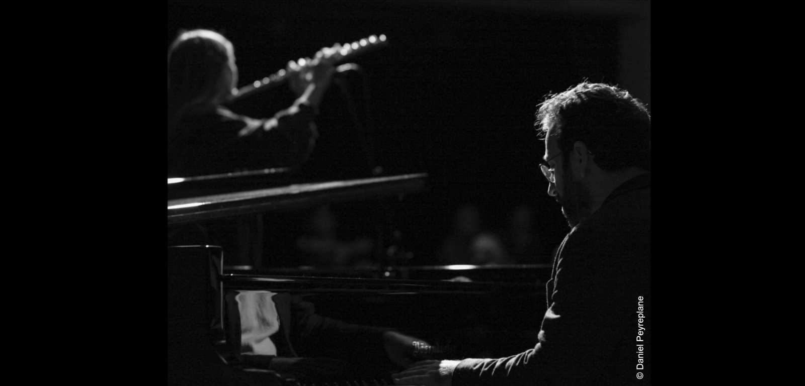 Laurent Coulondre est un immense pianiste (mais aussi un organiste véritable imposant) curieux d’expériences multiples et qui affirme son respect pour son mentor Michel Petrucciani, il a comme lui cette force maîtrisée dans son touché et cette délicatesse presque romantique. Christelle Raquillet, venue du « classique », très demandée, on la retrouve aux côtés d’Ellinoa, de Laurent Dehors, de Paul Morvan, de Thierry Maillard et de beaucoup d’autre jazzeux émergents ; elle participe sans doute un peu au retour sur le devant ce cet instrument finalement peu utilisé dans l’univers jazz qu’elle nous présentera, elle en jouera trois dont la majestueuse flûte basse, plutôt rare.