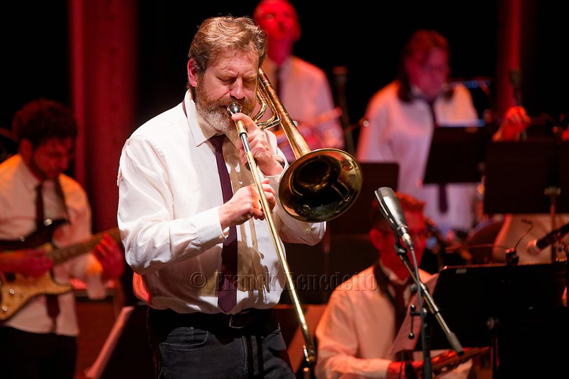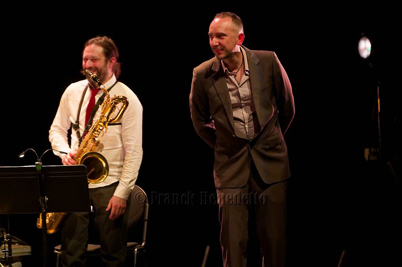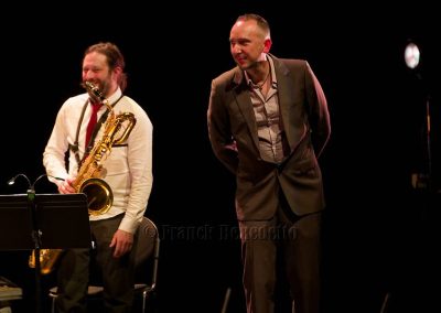 Puis le big-band et ses invités ont poursuivi avec Saint Barnabé (avec le solo de Fabien Mille au piano, Denis Vatain au saxophone ténor et David Patrois au balafon et vibraphone et Pierre Marcault aux percussions africaines),