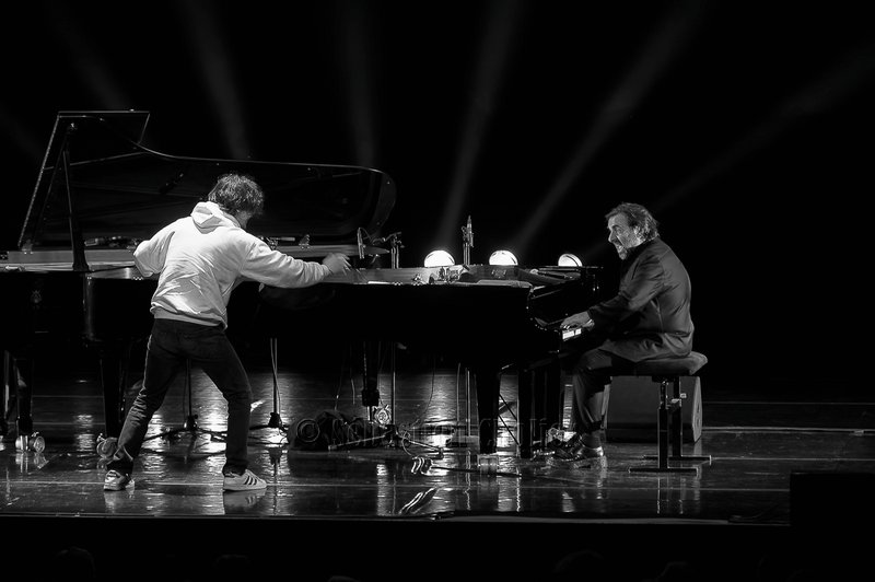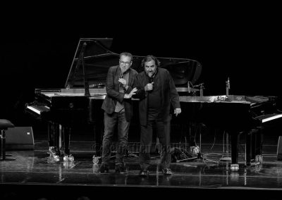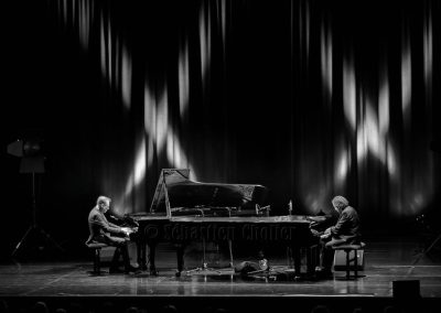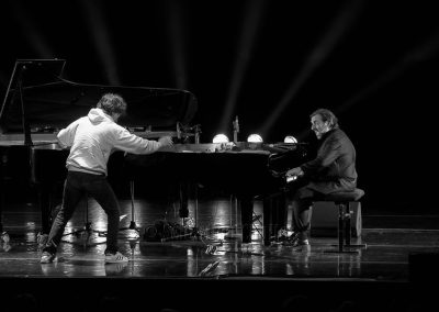 Leurs entrées sur scène, l’un à cour l’autre à jardin, sur une poignée de main complice est le départ d’un duel amical, unique et vibratoire.