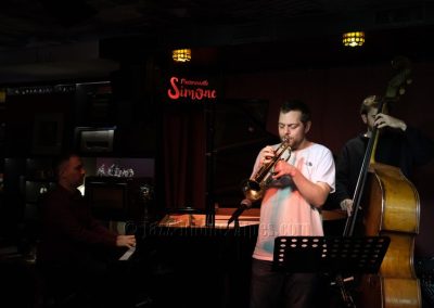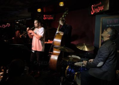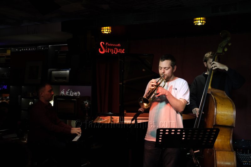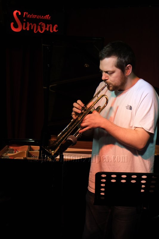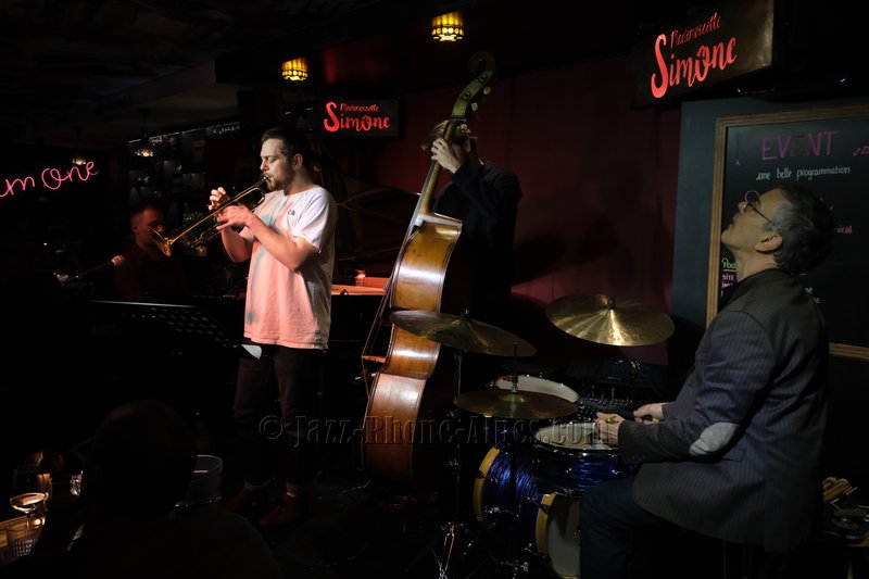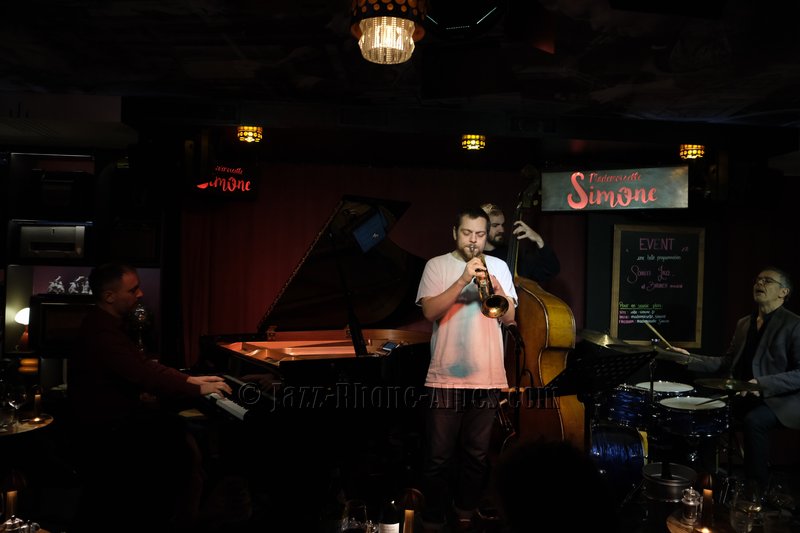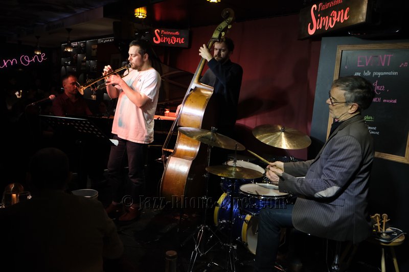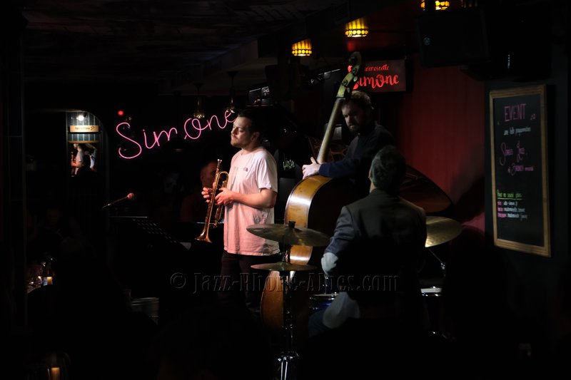 Le trio solide fait plus qu’accompagner le trompettiste qui prend une bonne partie de la lumière.