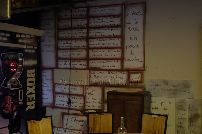 C’est un drôle d’endroit que « La Seiche » à Sevrier : à la fois bar et restaurant, dancing, karaoké, école de danse et attractions diverses, avec plusieurs salles de jauges variées. Luc, le patron a décidé de créer un club de jazz chaque dimanche en fin d’après-midi. Il en a confié la programmation au tandem Kristin Marion et Philippe Martel, musiciens de jazz qui officient régulièrement à l’Imperial Palace et ailleurs.
