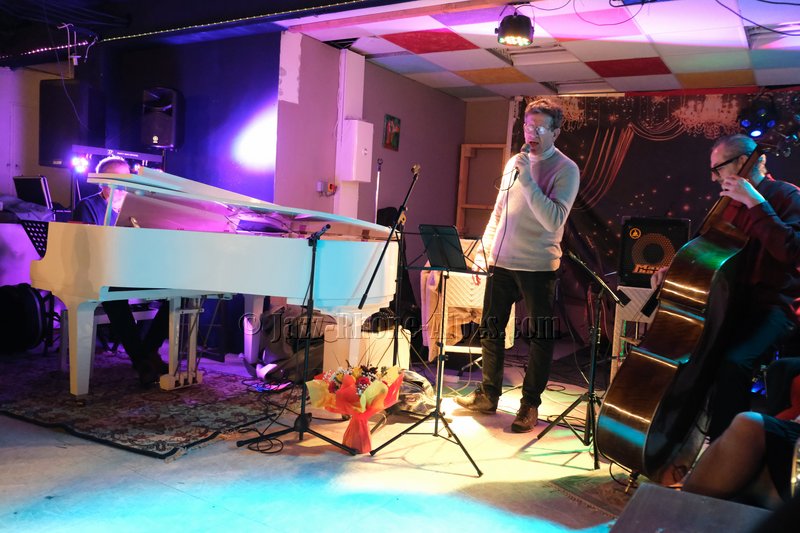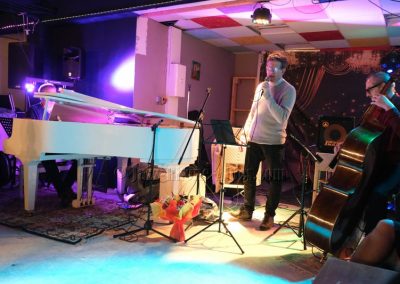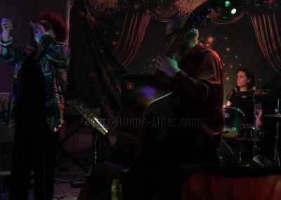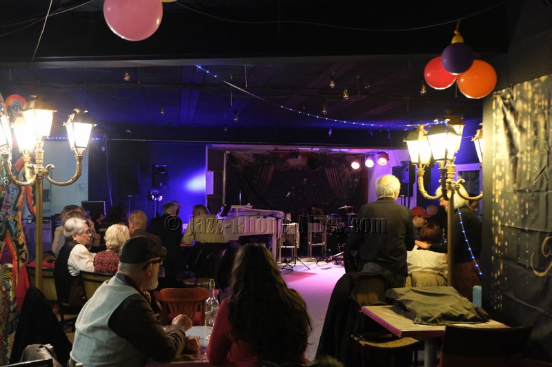 Près d’une centaine de personnes ont répondu présentes pour cette inauguration. La salle est disposée en cabaret avec des tables pour les boissons. Les chaises commencent à manquer, il faut aller en chercher. C’est de bon augure. Ce concert est présenté comme une jam dansante. Philippe Martel et Kristin Marion ont demandé à leur compère Fred Debraine de les accompagner à la contrebasse pour lancer la jam avec un premier set de swing.