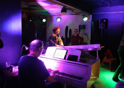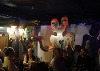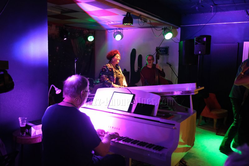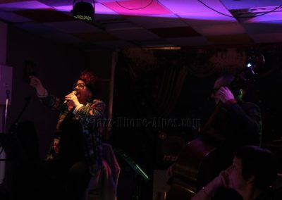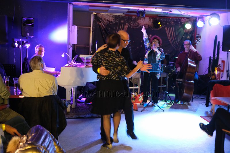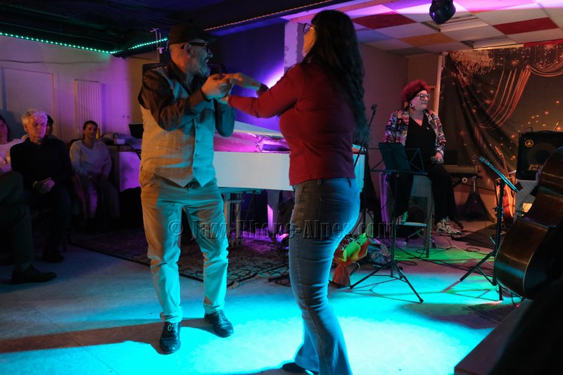 Peu de courageux pour la jam, alors Kristin appelle par leur prénom les musiciens venus avec leurs instruments ; ils ne peuvent se défiler. Ça commence par Manon, une Canadienne qui nous étonne avec ses cuillères ! Régis vient chanter Formidable (Aznavour), puis Mathilde vient s’asseoir à la batterie. Les standards comme On the Sunny Side of the Street continuent de faire venir des danseurs. Kristin chante et « ambiance » la salle. Bien sûr, on passe par des bossa-nova et on revient sur des standards swing du Great American Songbook.