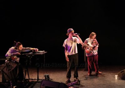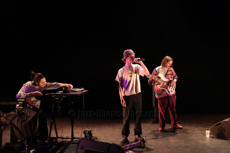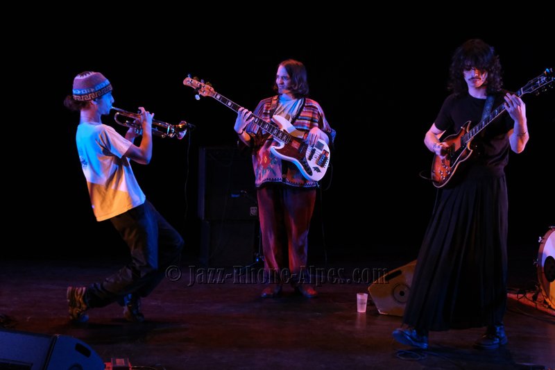 Ce qui pourrait s’apparenter chez eux à une ballade introduit calmement un troisième thème que l’on sent monter tel un volcan. Siméon Peronnet, le trompettiste, se lance dans un flow qui marque une ruture dans leur style.