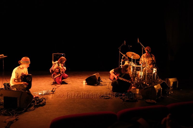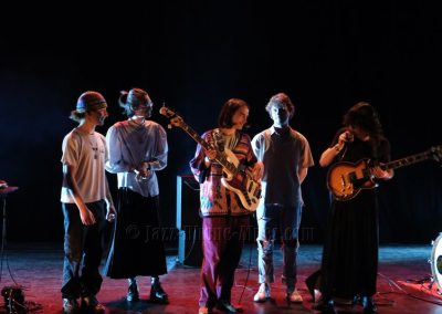 Gabin Alessio est très concentré sur sa guitare et travaille ses effets. Il me fait ostensiblement penser à Santana jeune  ou Zappa avec une technique à la Hendrix.