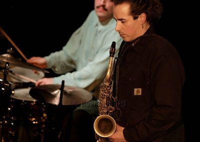 Pierre-Eden Guilbaud à la batterie, né à la Réunion et nourri aussi aux agapes new-yorkaises. A noter qu’il remplace au pied levé et de manière complètement impressionnante Antoine Paganotti. On s’installe pour deux sets et une petite dizaine de titres extraits de ses opus ou récemment composés. Mince, pas le temps de s’attacher au siège, voilà qu’on est submergé par Naïma, un arrangement de la chouette ballade de Coltrane, véritable phénix de Plume. Ce n’est pas bon, c’est beau. On aligne les adjectifs comme des perles dans un écrin: sensuel, dense, évident, voluptueux, plein, mélodieux, simple, riche. Tout le lyrisme de Coltrane s’écoule en une cascade d’or et d’enluminures. L’effervescence feutrée de la batterie se noue au rythme tribal qu’un toucher pianistique offre, débridé, à la caresse d’un sax dont le son est révélation. On dirait un cérémonial, mais pas secret. Et le feeling, ça dépote large. Les autres morceaux seront à l’envi.