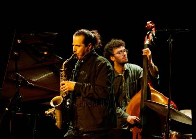 Par exemple la reprise d’un hymne traditionnel baptiste quand le père de Plume lui jouait du piano. Là aussi, c’est la glisse harmonieuse, quelque chose d’à la fois aérien et planté en une terre émotionnelle connue, un terroir bienveillant. L’alto semble à la fois en dehors et en dedans, comme si l’intériorité cherchait à s’extraire de ses failles légères, pour mieux embrasser l’air et le monde. Un seul -petit- regret, que Plume s’élève encore davantage… Ce sera le cas au fil d’un second set où un vrai son de groupe donne un côté symphonique à quatre. C’est dire combien la musique se fait l’architecte des espaces qui se côtoient, des influences, des continents, comme dans Going too soon , à la mémoire d’un batteur ami. On entendra aussi An Angel is looking over you, dans laquelle le jazz s’émaille d’orange clairs-obscurs à la Rembrandt… Tout est puissance et générosité , avec des constructions béton, des lignes de force élégantes, des courbes chaleureuses, des boucles sans frisottis. Irradiés. Je crois que c’est un peu comme ça qu’on est sortis avec, en prime, un peu plus d’amour et de vie. De beauté.
