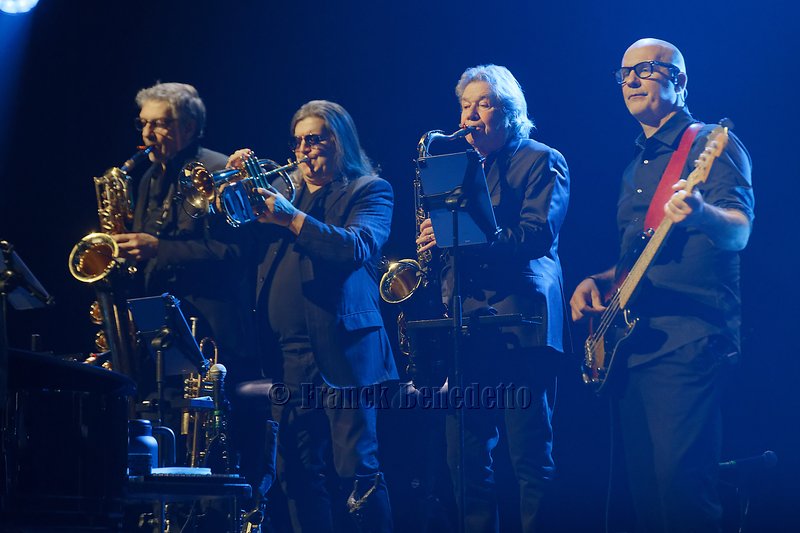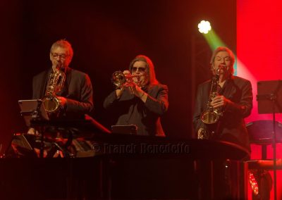 Sur scène, ces musiciens nous emmènent, comme les mots des compositions de Michel Jonasz. Les trois soufflants, j’ai nommé Michel Gaucher, Pierre d’Angelo et Éric Mula ne laissent rien au hasard pas plus que les deux choristes, Eric Filet, Jean-Marc Reyno sur une chorégraphie d’une fantastique énergie. Avec le final de Manu Katche à la batterie [Ce doit être mon cœur qui s’ouvre.].