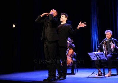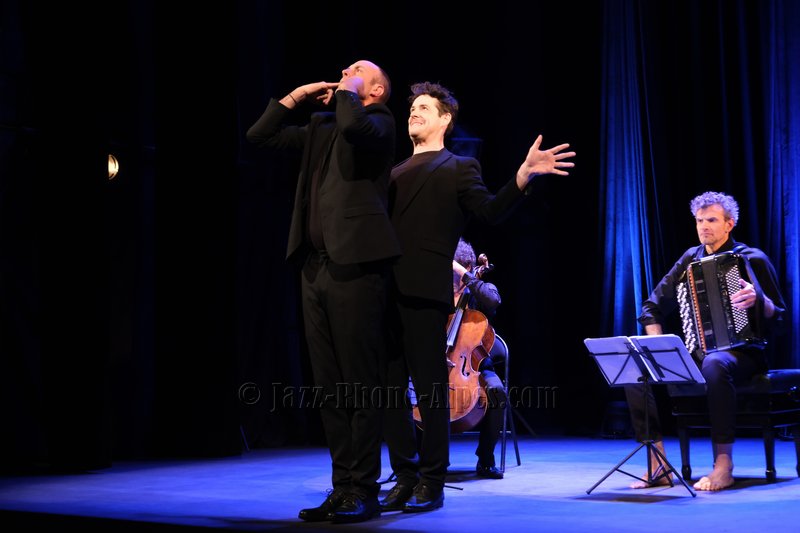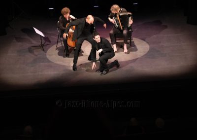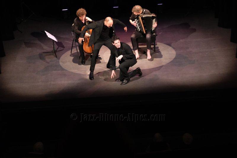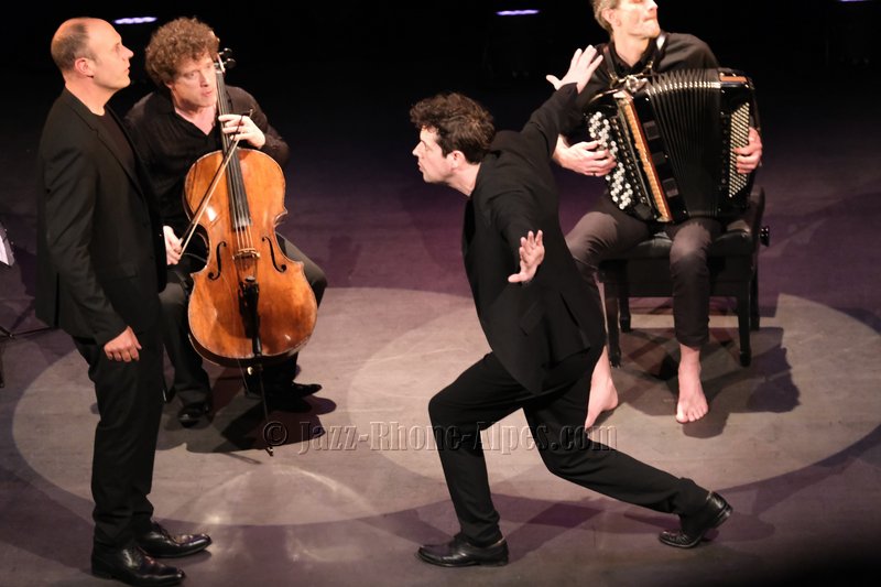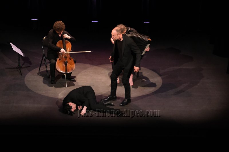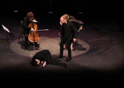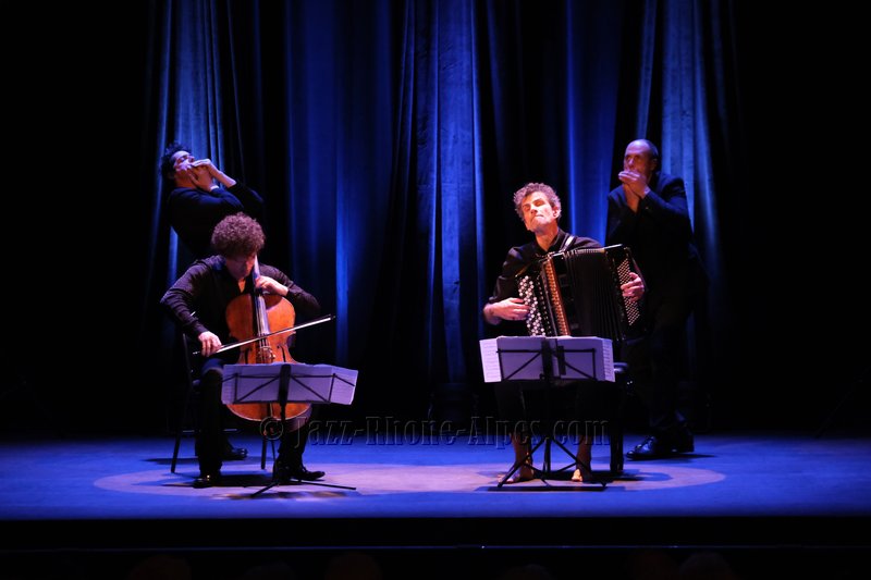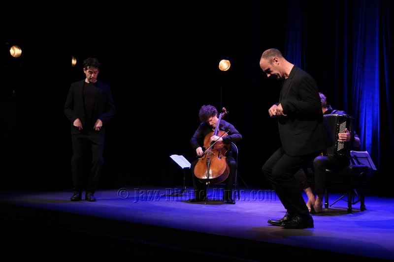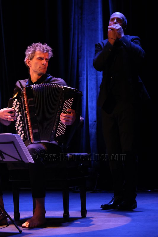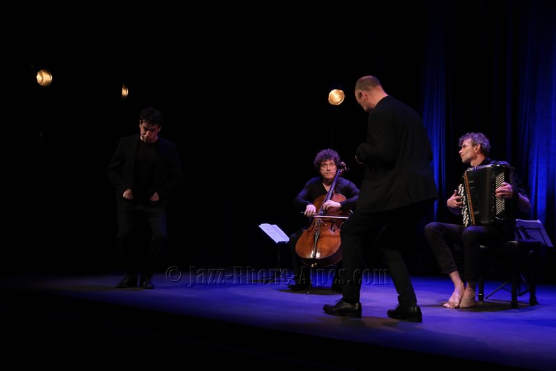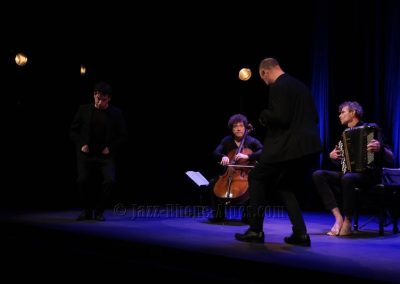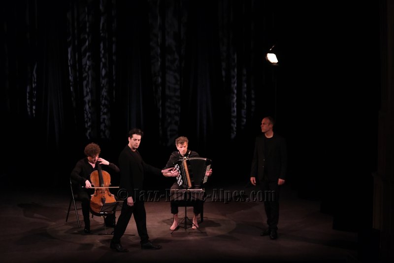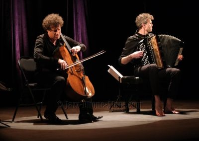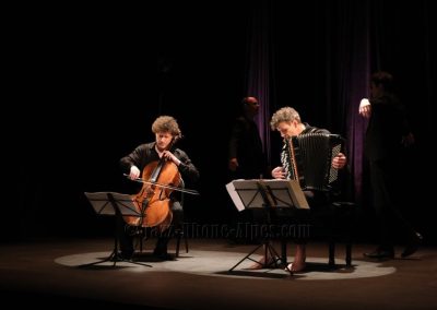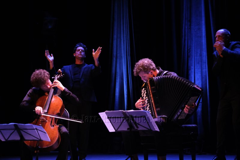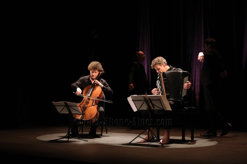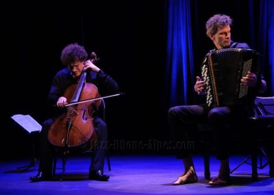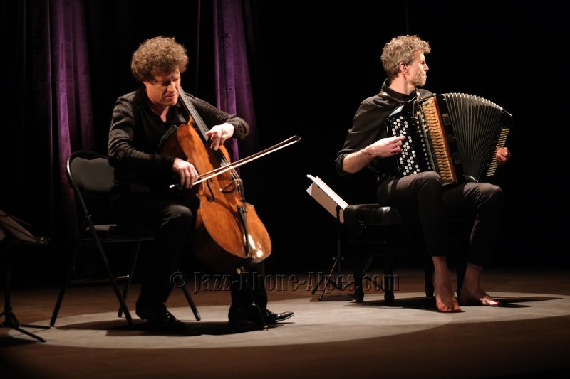 Peu de choses nous incitaient à aller couvrir ce rendez-vous, hormis la présence du violoncelliste François Salque et de l’accordéoniste Vincent Peirani, instrumentistes de jazz s’il en est… mais pas que, comme nous allons le découvrir. Nombreux sont celles et ceux qui ont voulu partager cette expérience : le Théâtre Ponsard est plein jusqu’au dernier balcon (280 personnes).