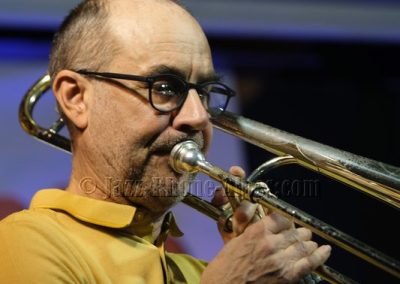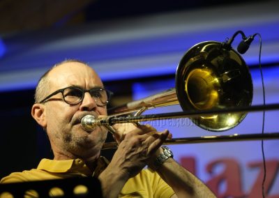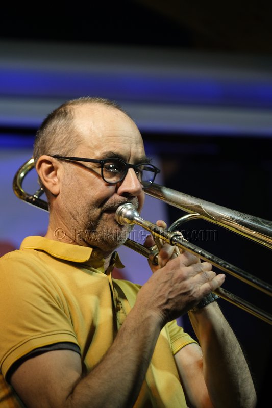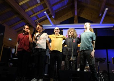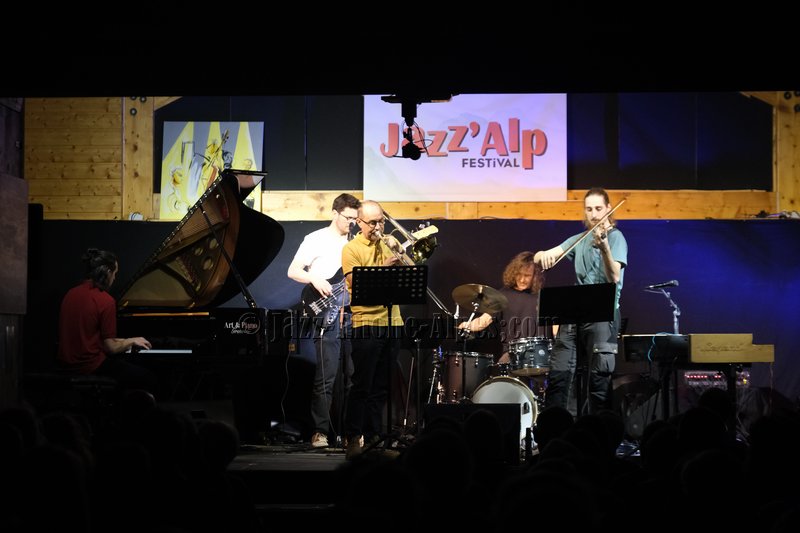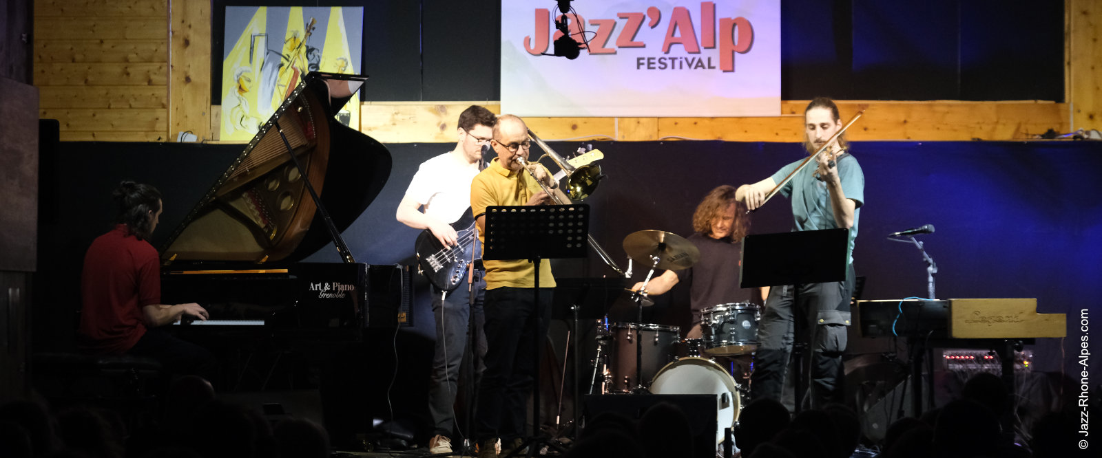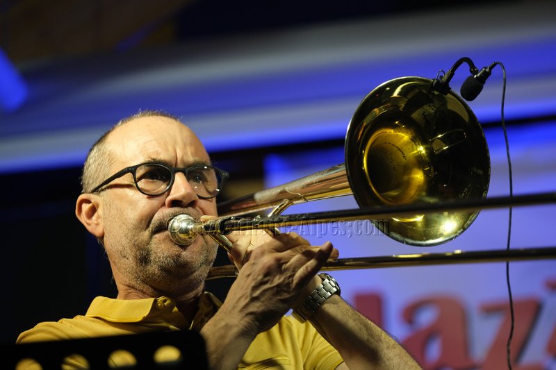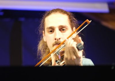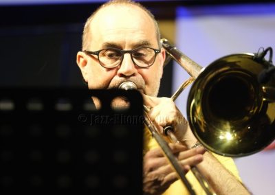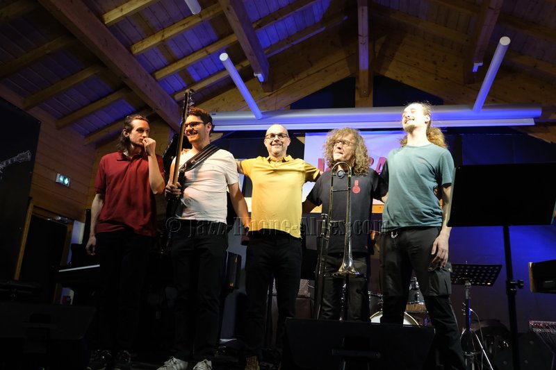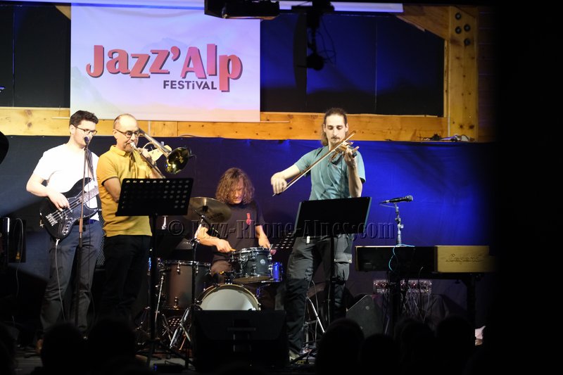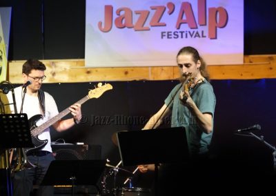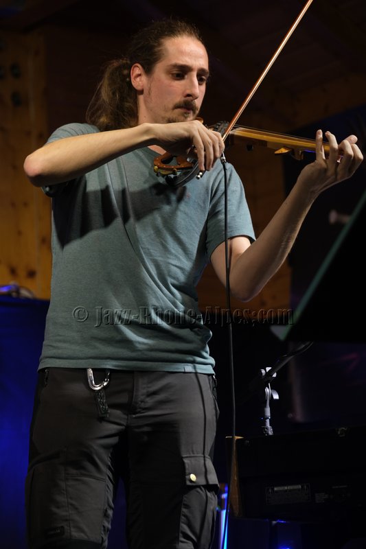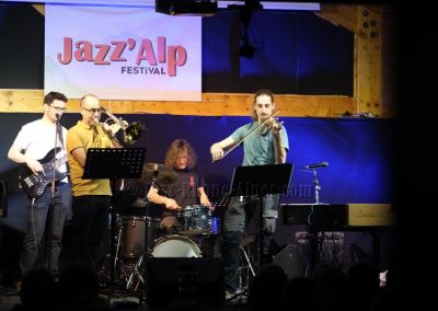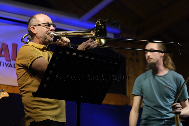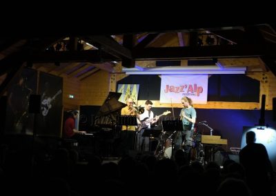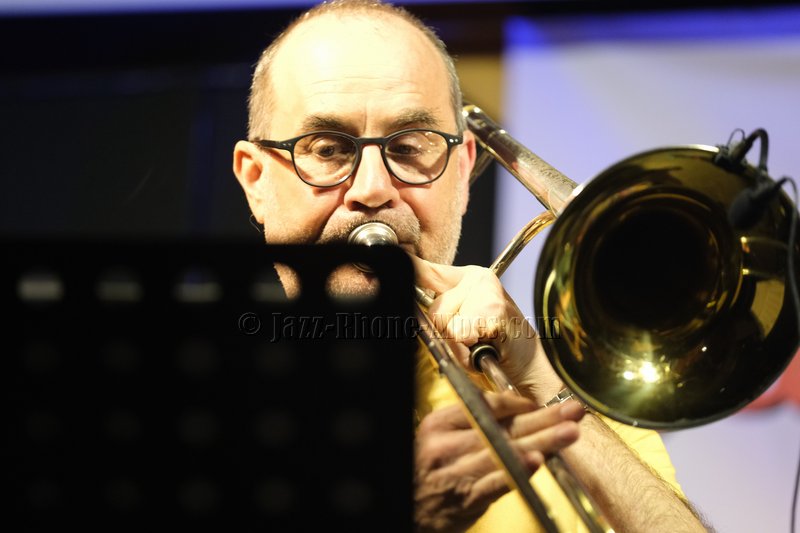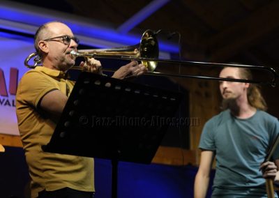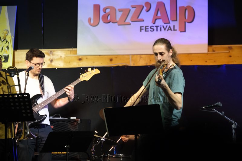 Devant deux solistes : Jean-Charles Souriau au trombone et Léo Cazenave au violon électrique cinq cordes