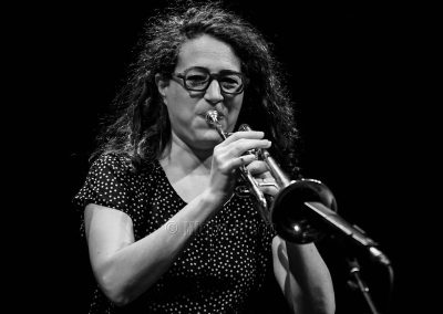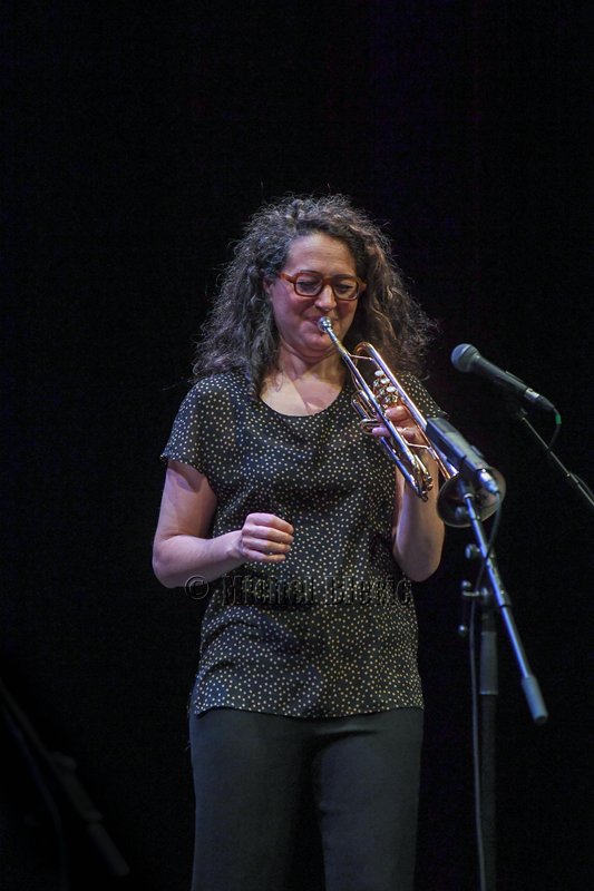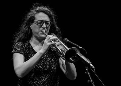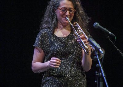 Un nuage passe sur la salle avec le vibrant Kyoto dans la brume d’Airelle Besson puis comme en clin d’œil à LUX dont la programmation est dédiée aux images et aux arts visuels, La course, hommage au célèbre court métrage « Fatty se déchaîne » avec Buster Keaton dont Airelle se régale.