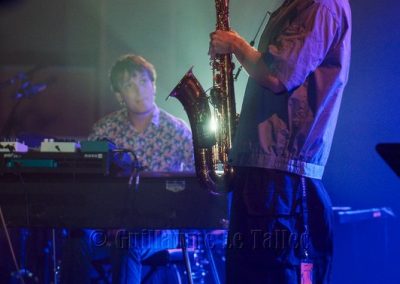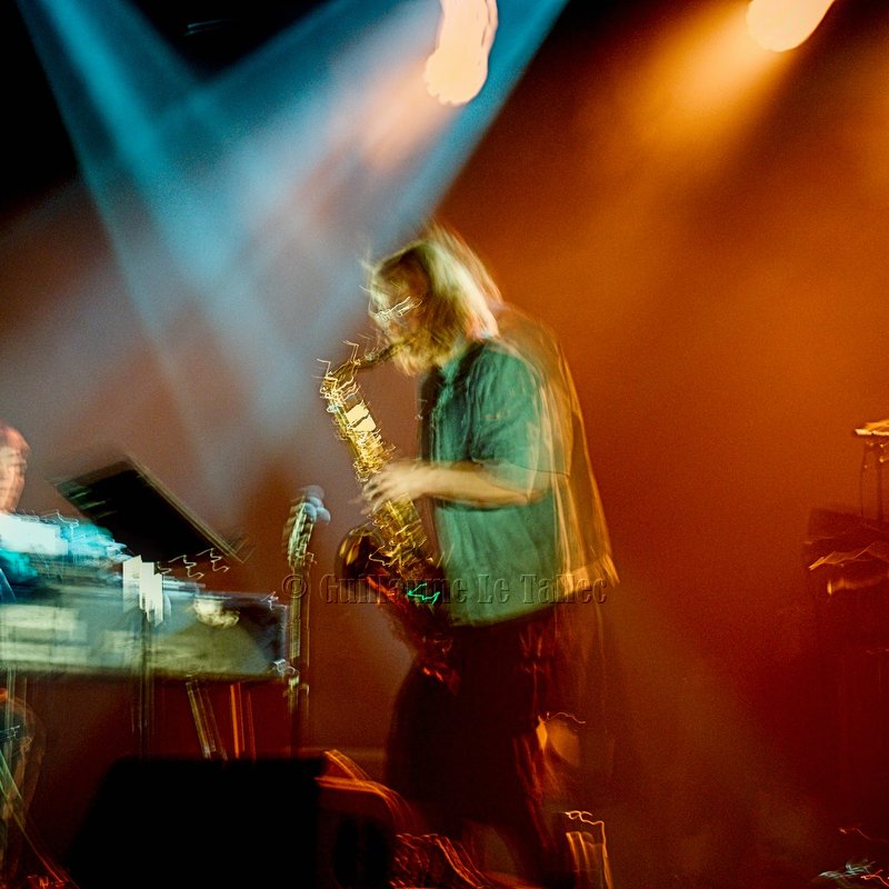 Redescente avec Chaussette on the floor, et Il fait mi-beau, sourires et plaisanterie, Ils échangent des clins d’œil sur une impro piano sax. Il y a comme un chant caché et soudain ca pulse, c’est Pierre-Marie Lapprand et son sax.