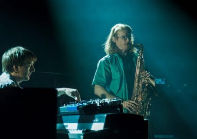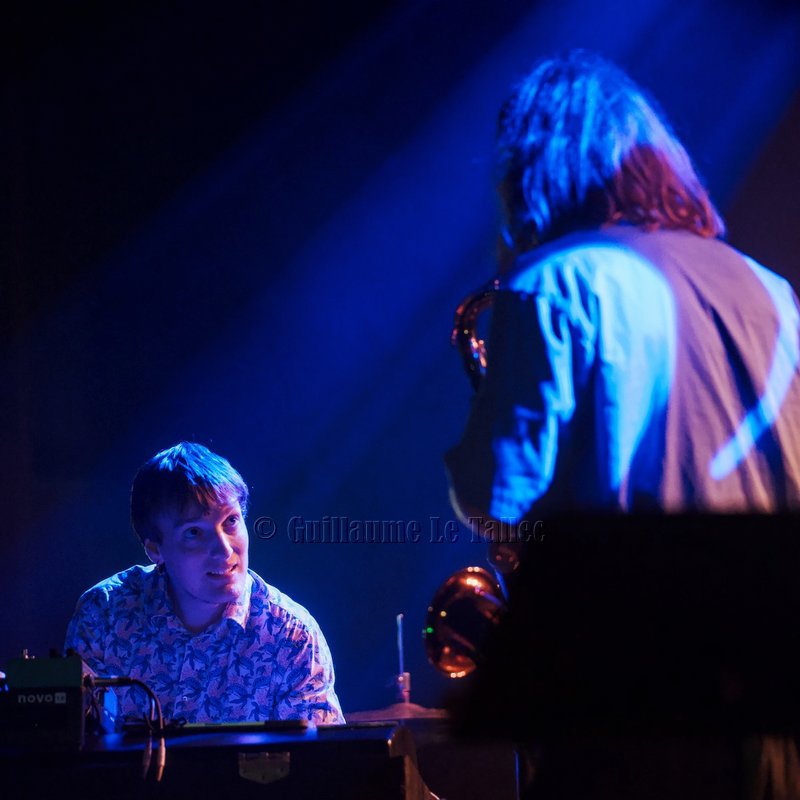 Congé Spatial, ce sont ces deux musiciens compositeurs, Pierre-Marie Lapprand aux saxophones et Etienne Manchon au piano Fender Rhodes, un superbe partage de talents aux effets électros parfaitement ajustés.