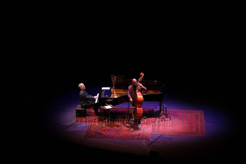 Le piano à queue noir brillant trône sur la scène quand Brad Mehldau, tout de gris vêtu entre à cours accompagné de Christian McBride, avec son sourire légendaire, et une veste mauve. Brad s’installe devant son piano, toujours presque sur le bord de son siège et Christian empoigne fièrement sa contrebasse.